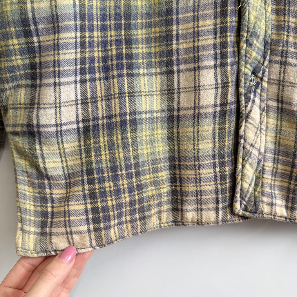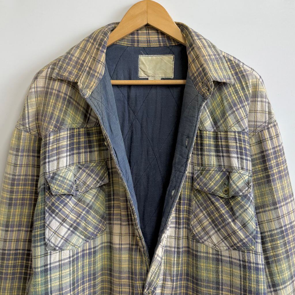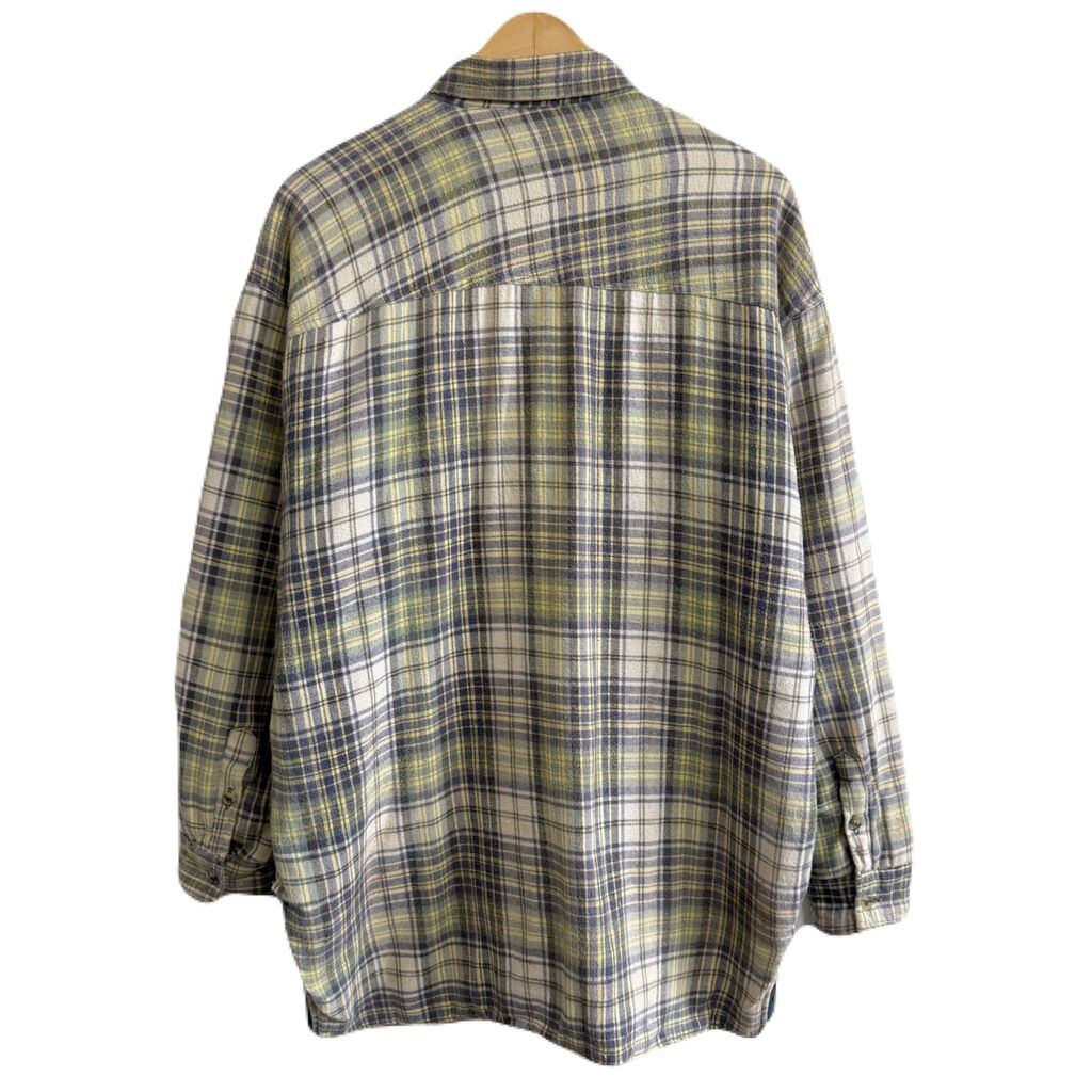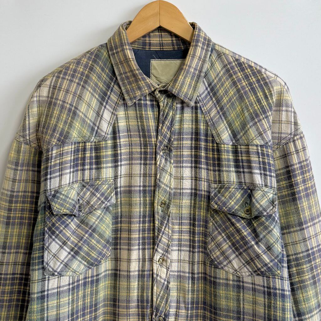 キルティング裏地 コットンシャツ チェック柄 厚手長袖シャツ イエロー×ネイビー×白×多色 XLサイズ No.P148