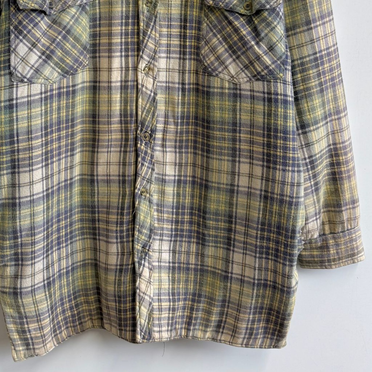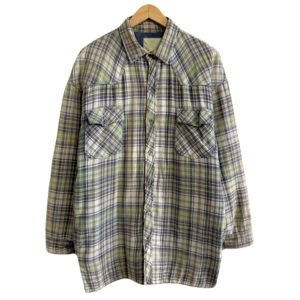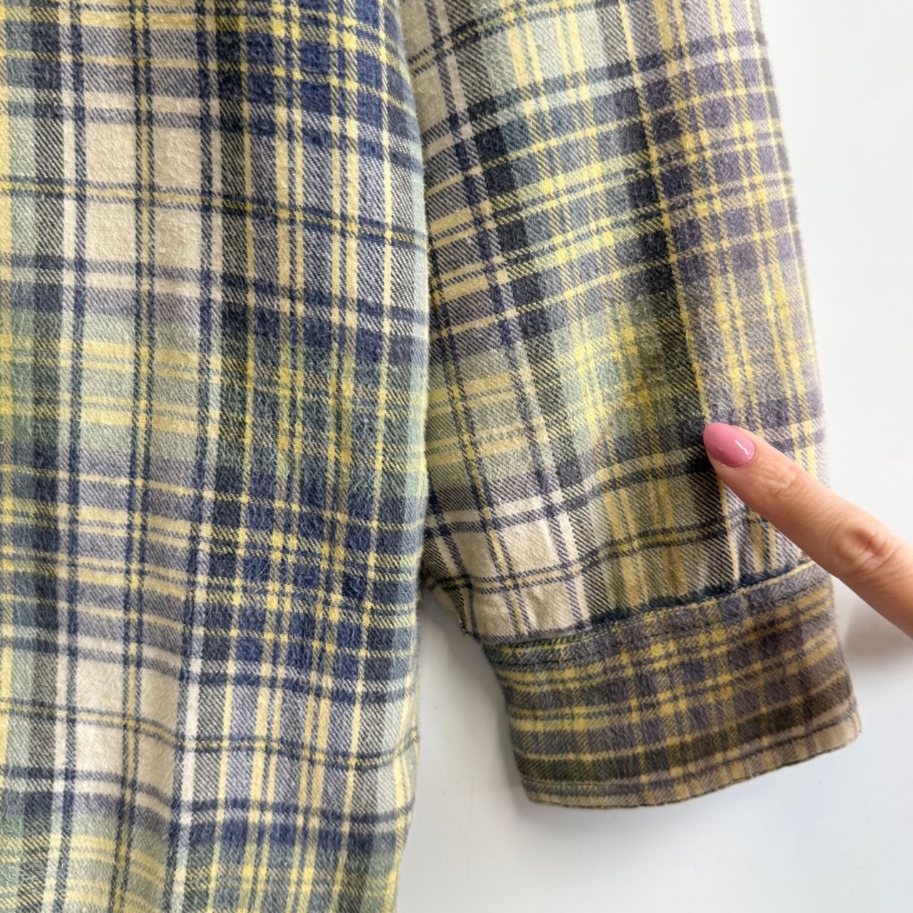 キルティング裏地 コットンシャツ チェック柄 厚手長袖シャツ イエロー×ネイビー×白×多色 XLサイズ No.P148