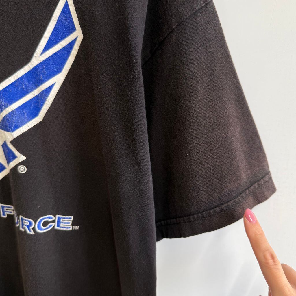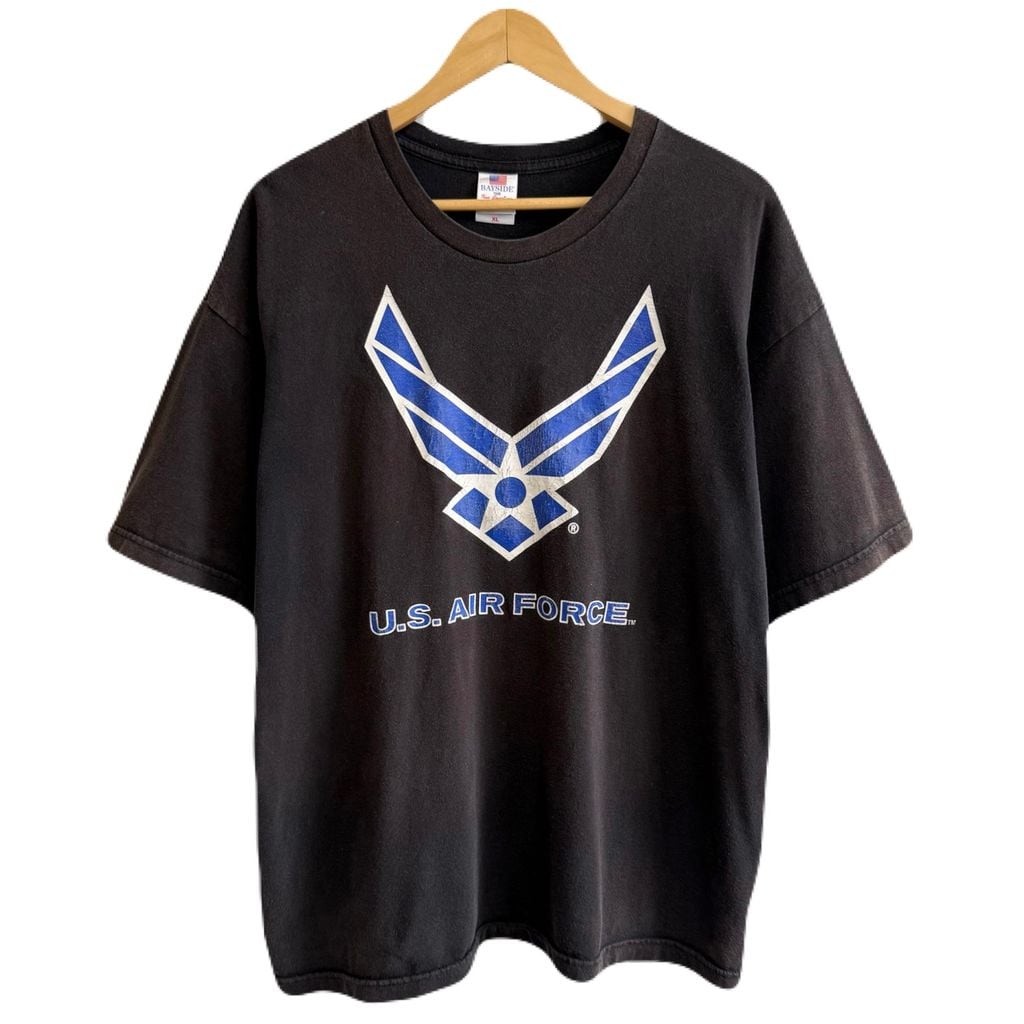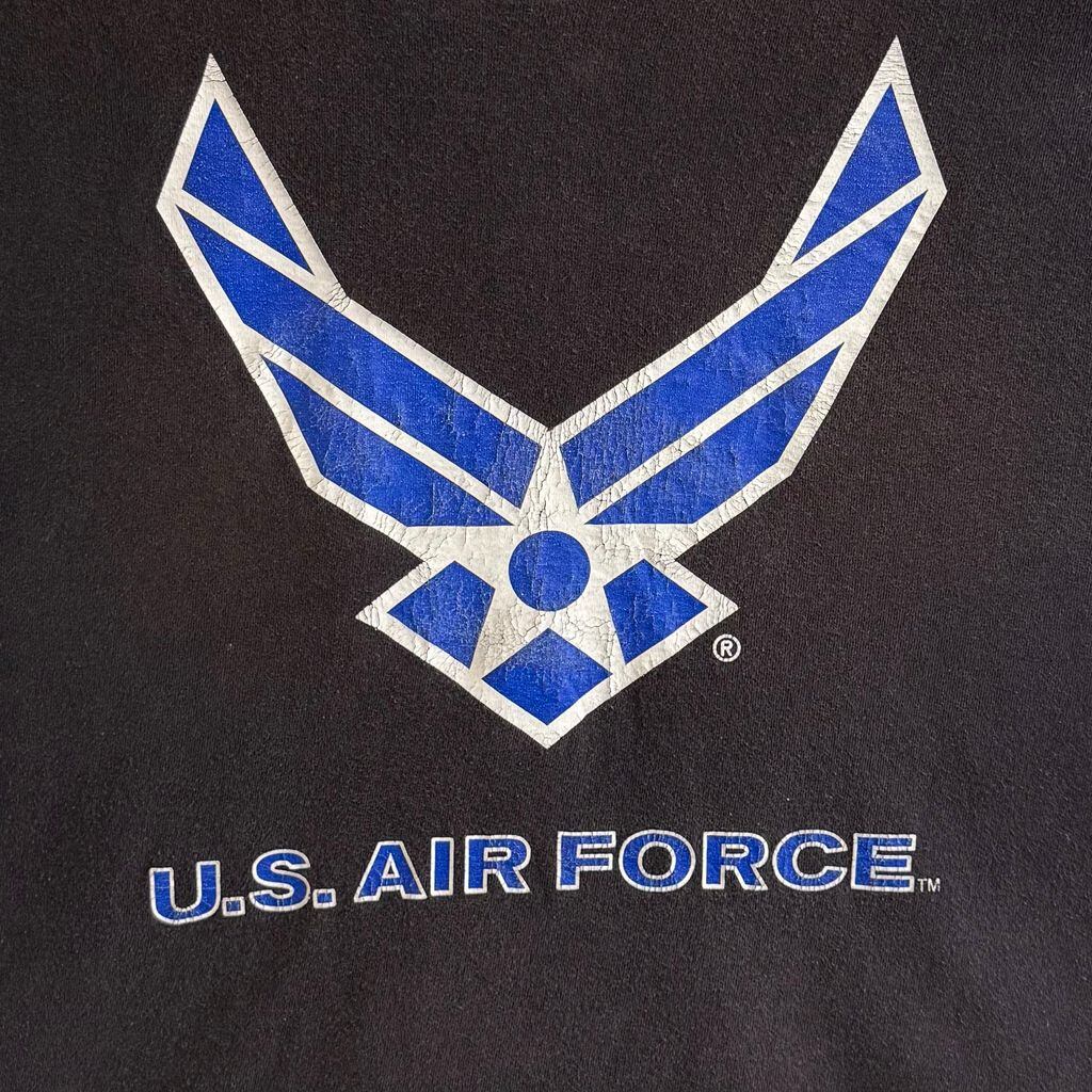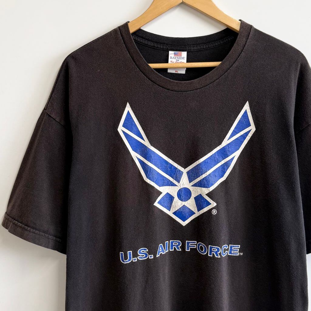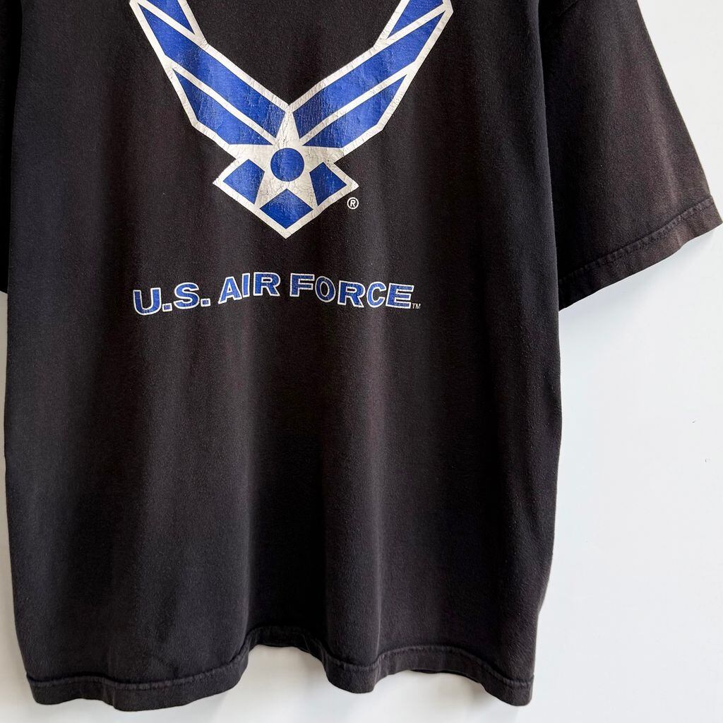 USA製 BAYSIDE ミリタリー プリント U.S.AIR FORCE 半袖Tシャツ 黒系 XLサイズ No.P153