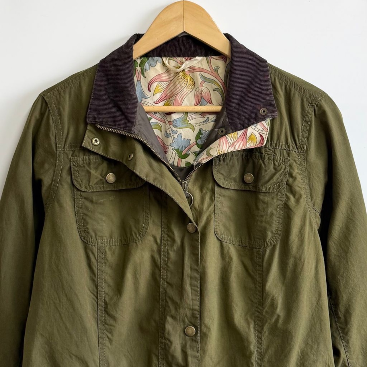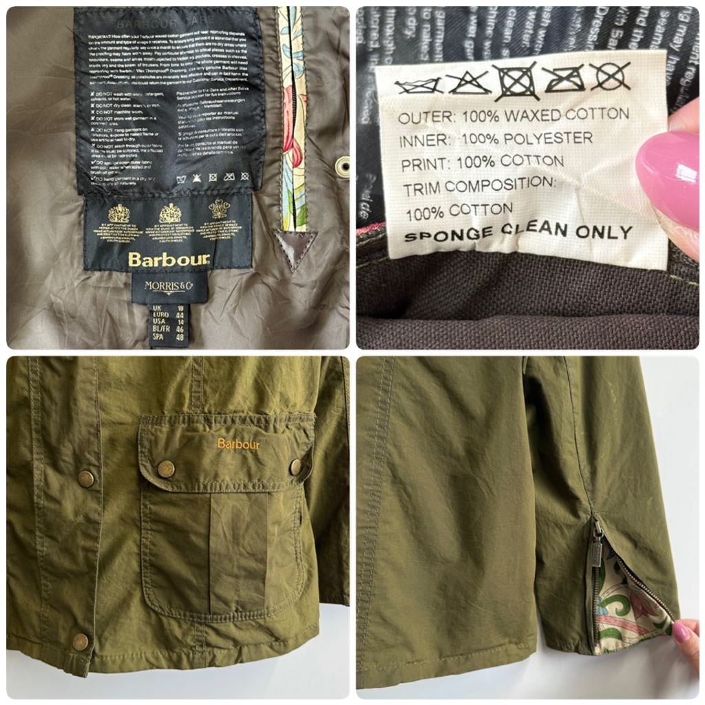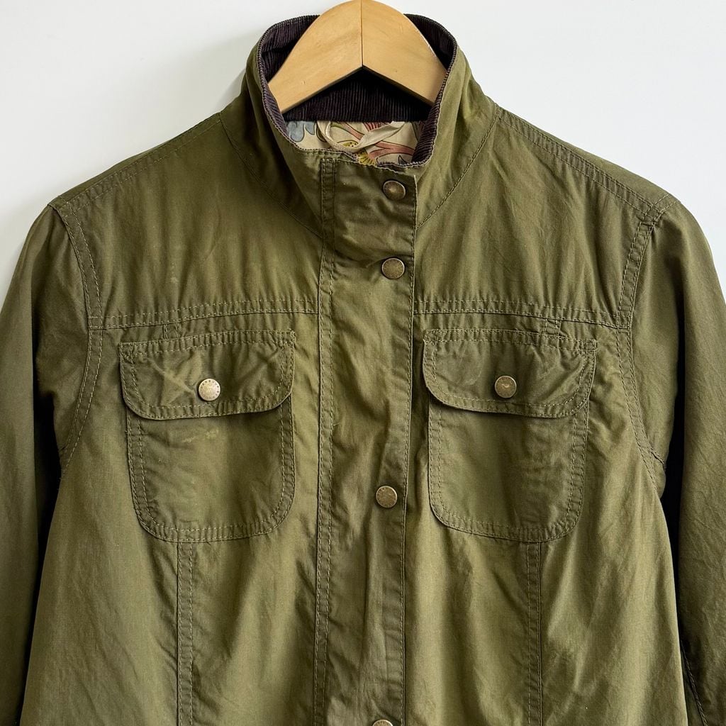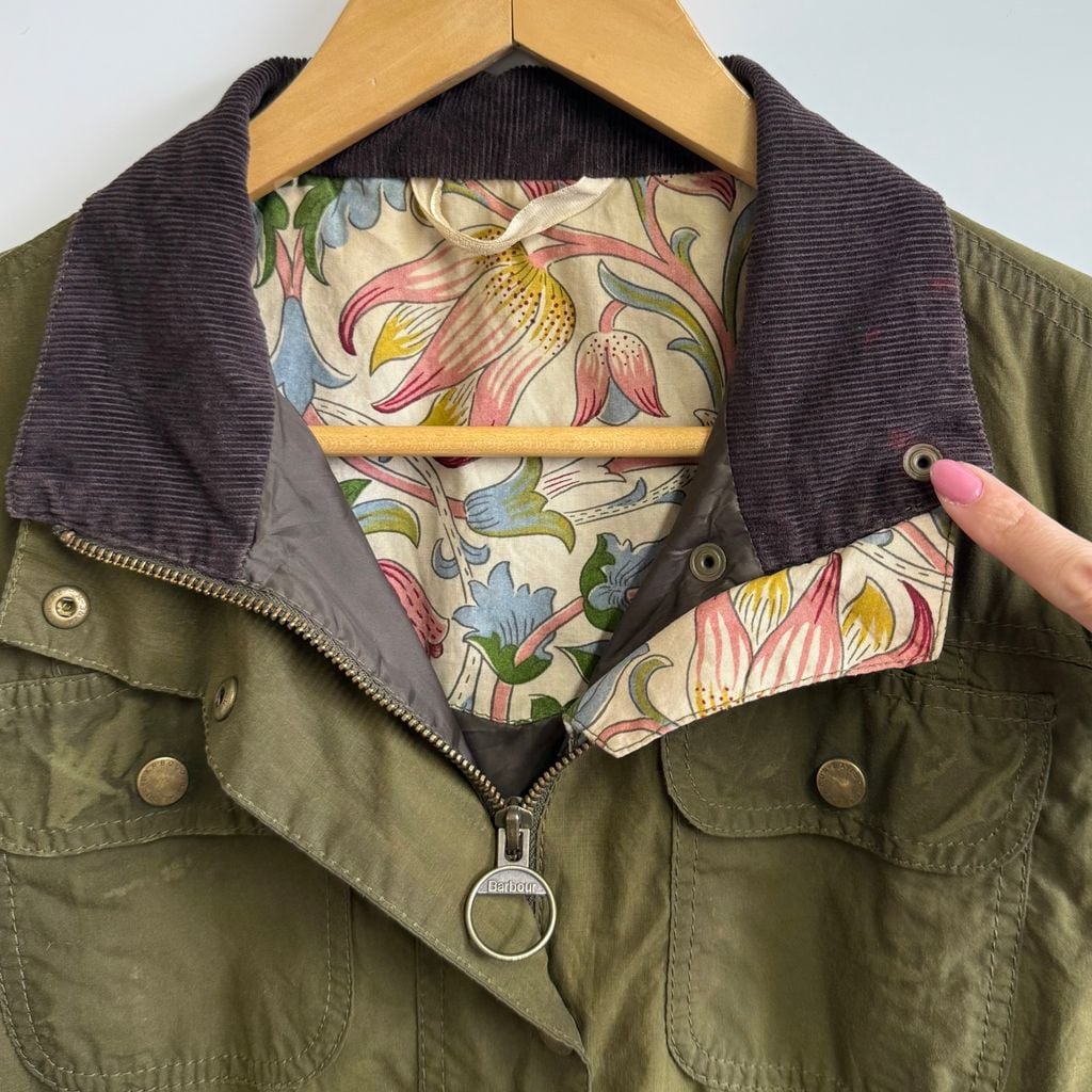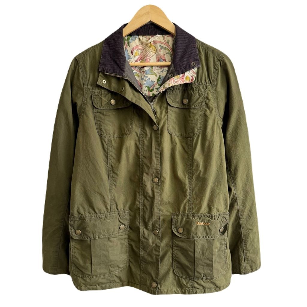 Barbour バブアー オイルドジャケット 無地×花柄 スナップボタン×フルジップ カーキ No.P166