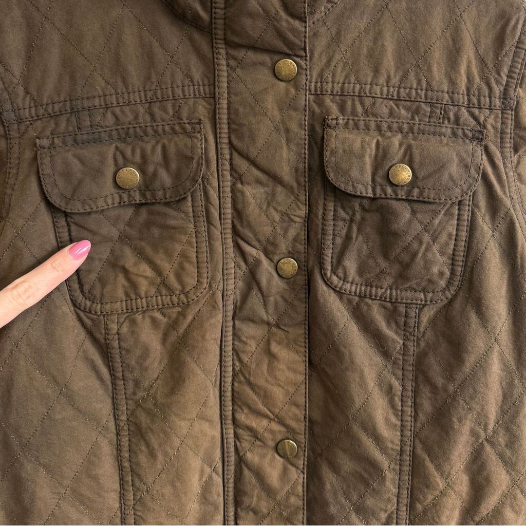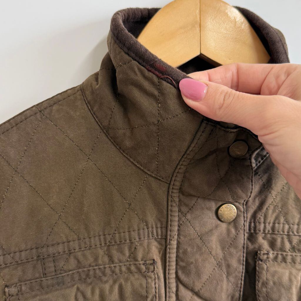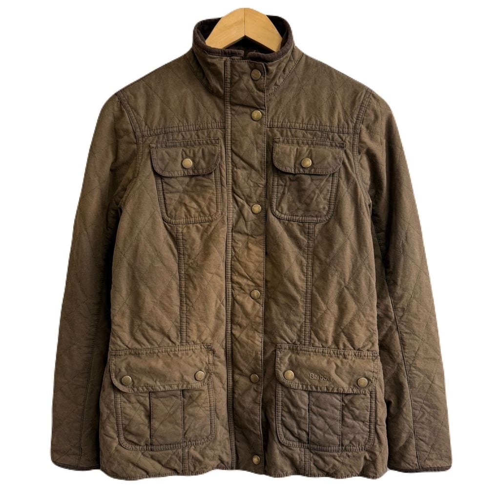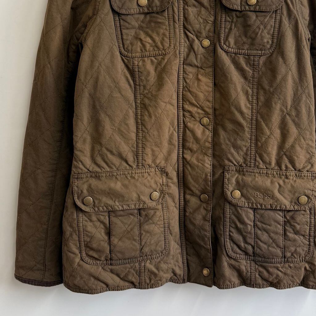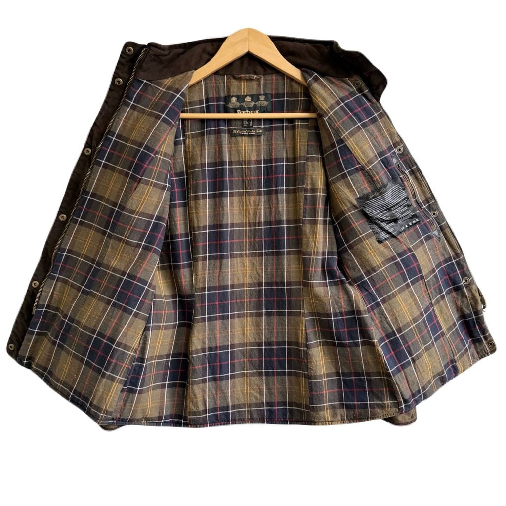 Barbour バブアー キルテッド ユーティリティ ワックスジャケット 裏地チェック柄 スナップボタン×フルジップ 茶色 ブラウン No.P167