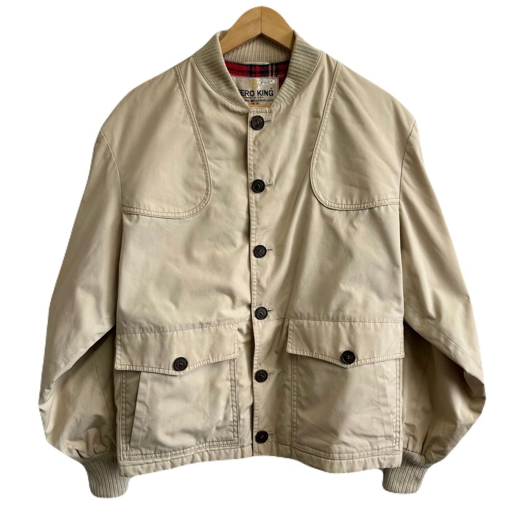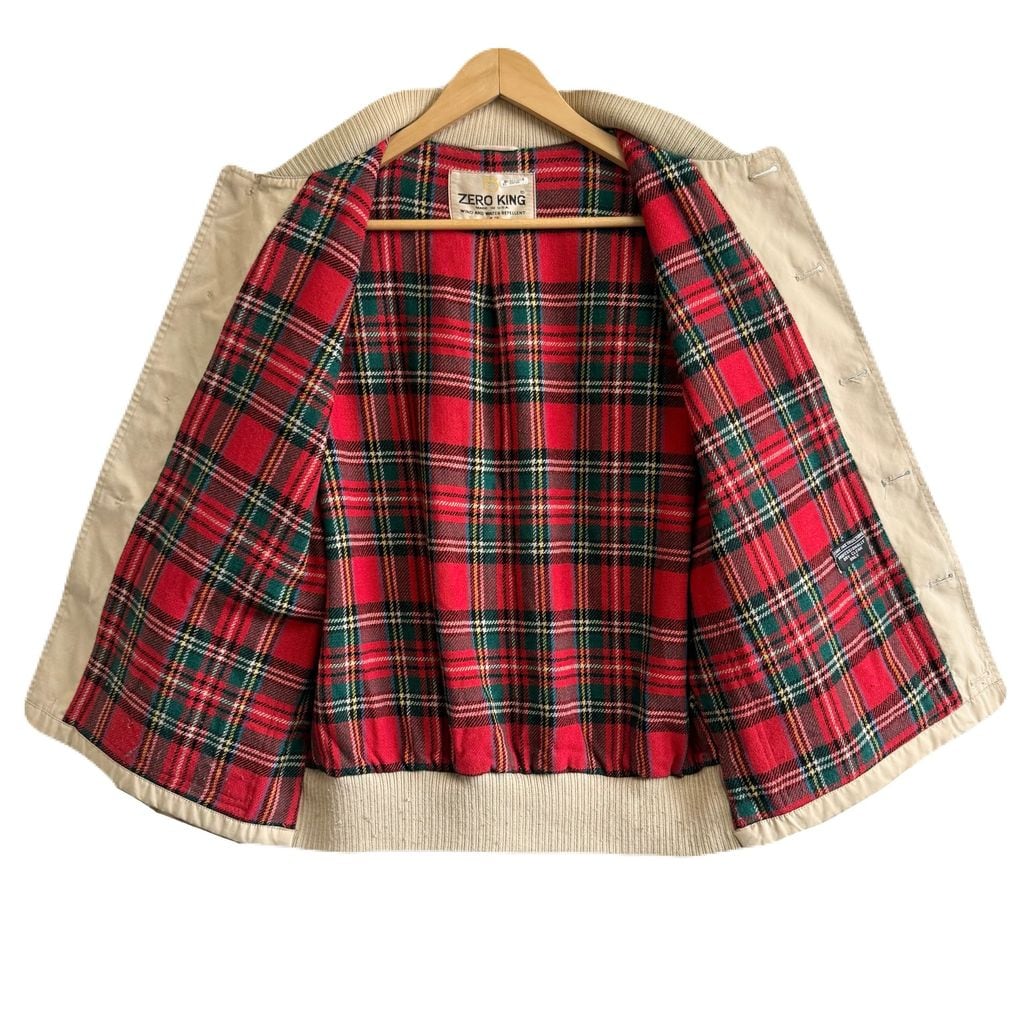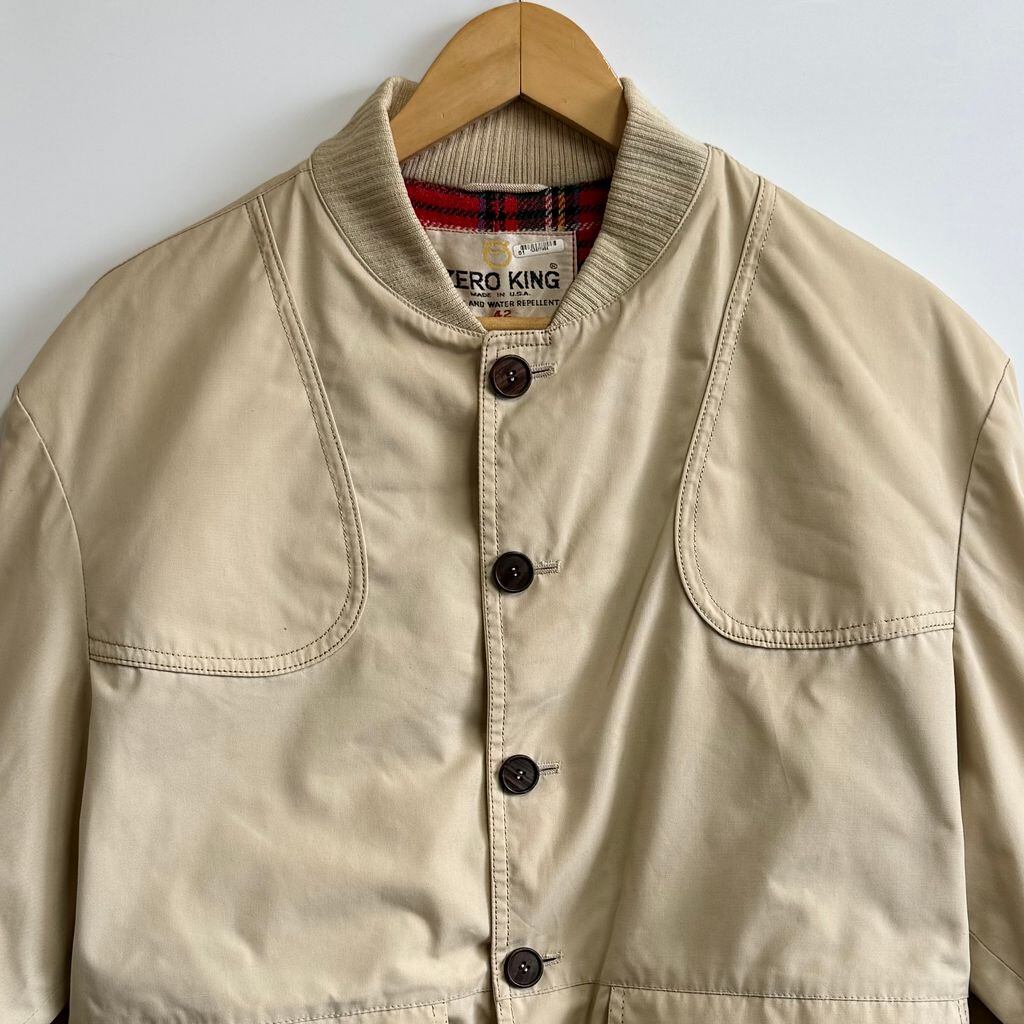 60's〜 vintage ビンテージ USA製 ZERO KING バルスター型ジャケット ブルゾン 裏地チェック柄 フロントボタン ベージュ No.P169