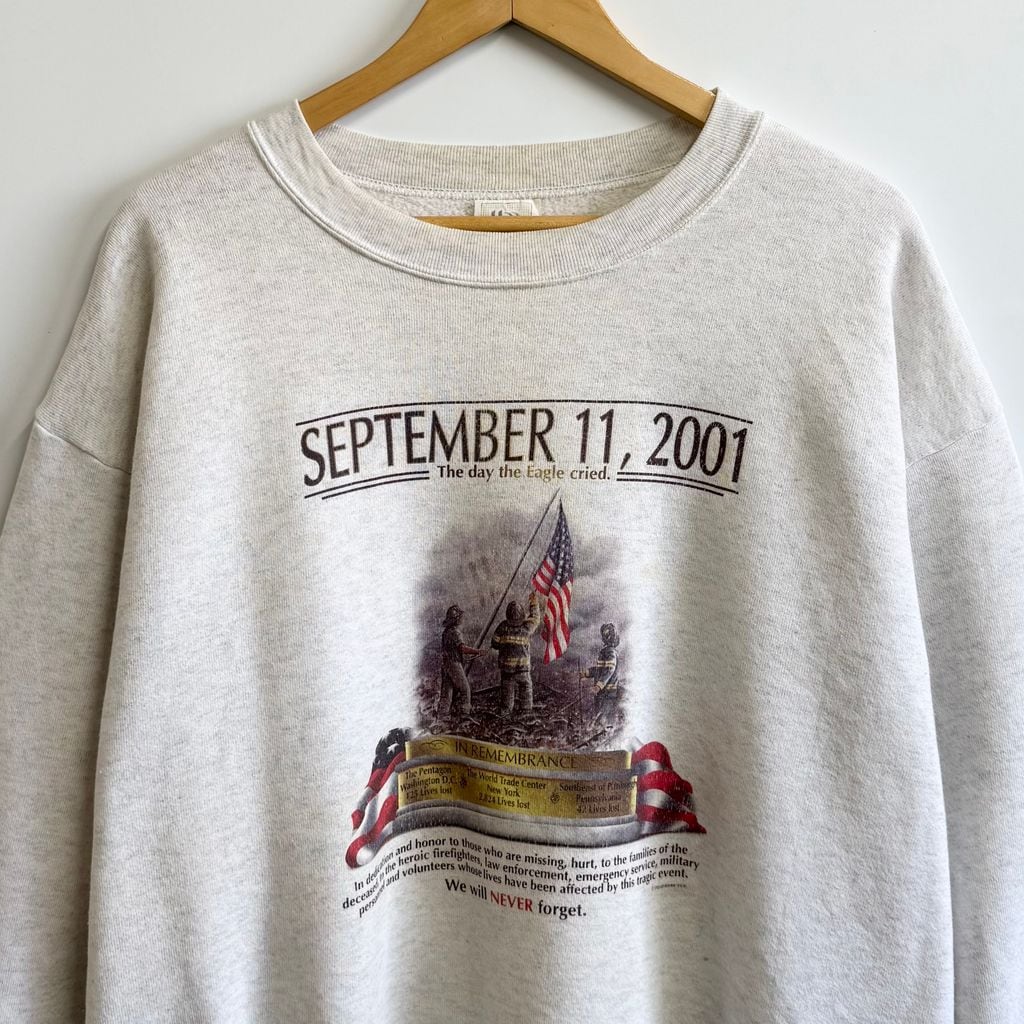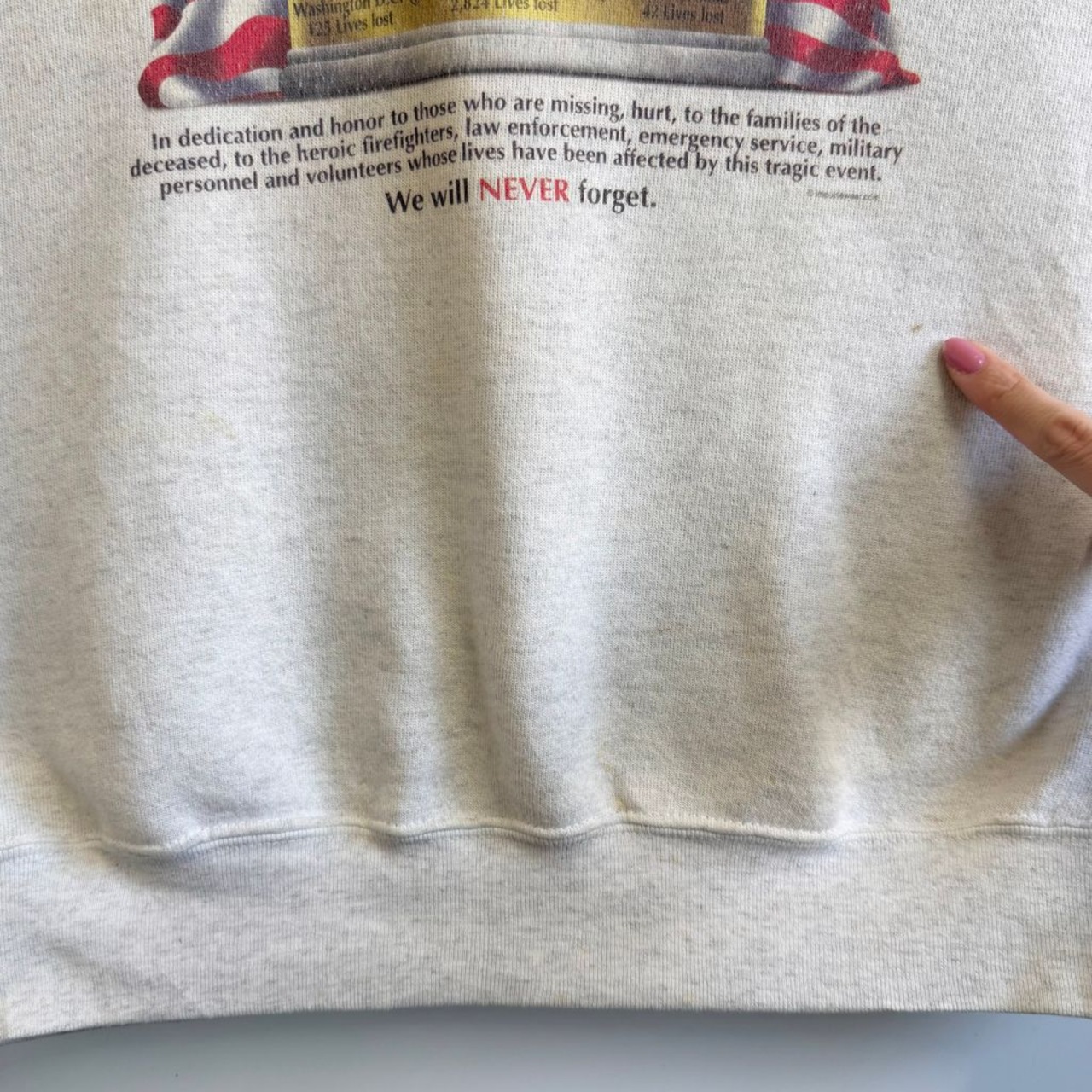 vintage ビンテージ USA製 WON'S WEAR 2001.9.11 トレーナー スウェット 裏起毛 ライトグレー XLサイズ No.P175