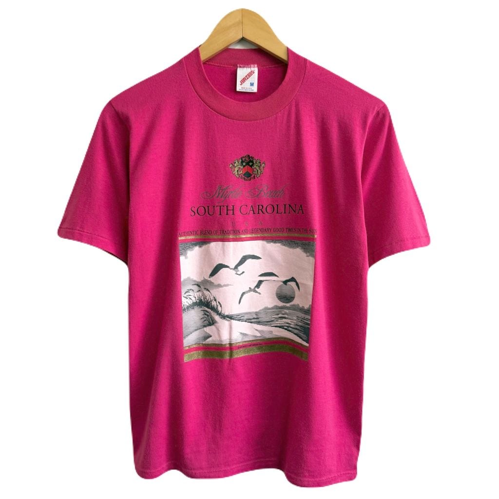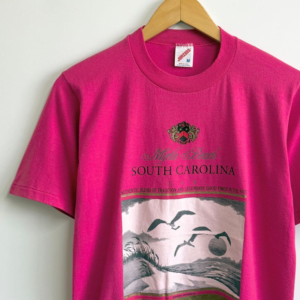 80's vintage ビンテージ USA製 サウスカロライナ ビーチ シングルステッチ 半袖Tシャツ ピンク Mサイズ No.P179