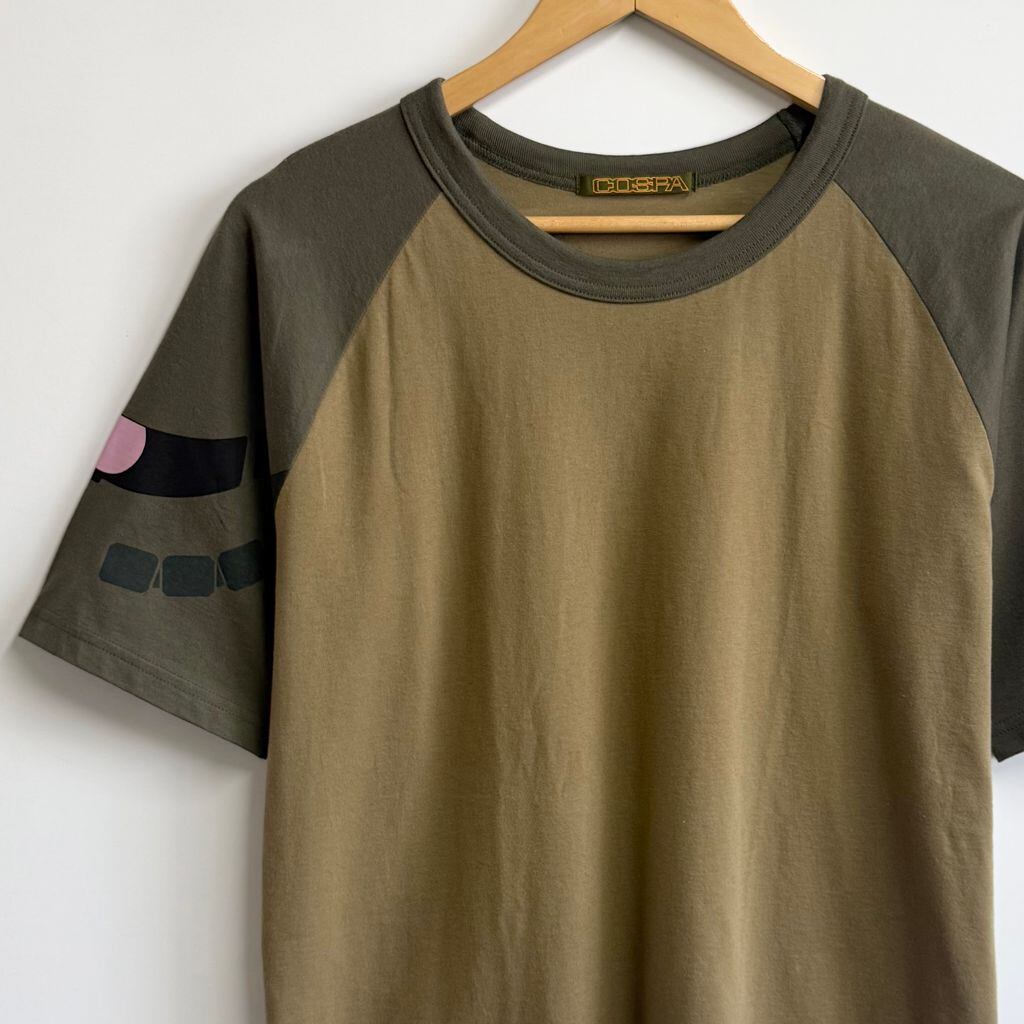 COSPA オールドコスパ 機動戦士ガンダム ラグランスリーブ 半袖Tシャツ カーキ No.P180