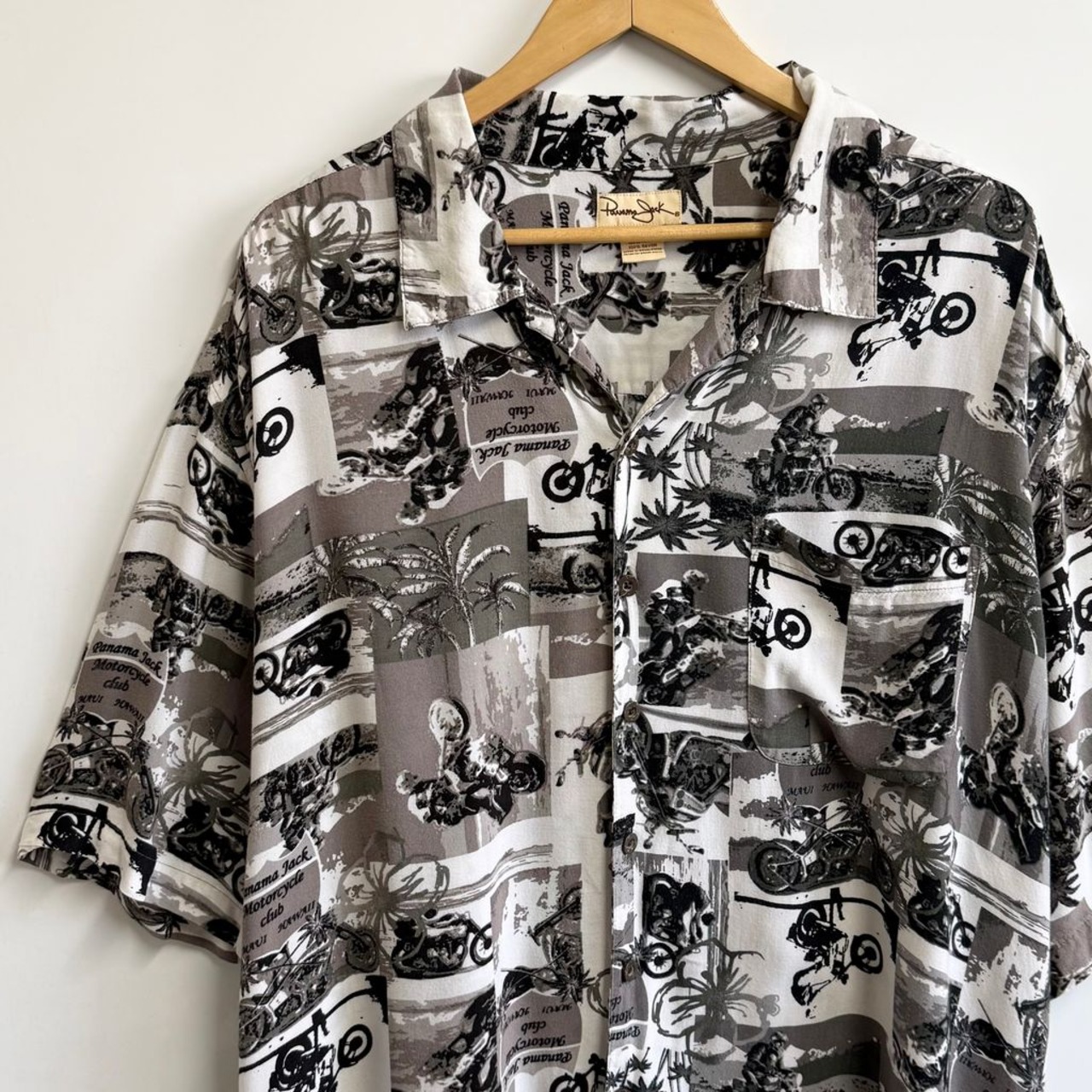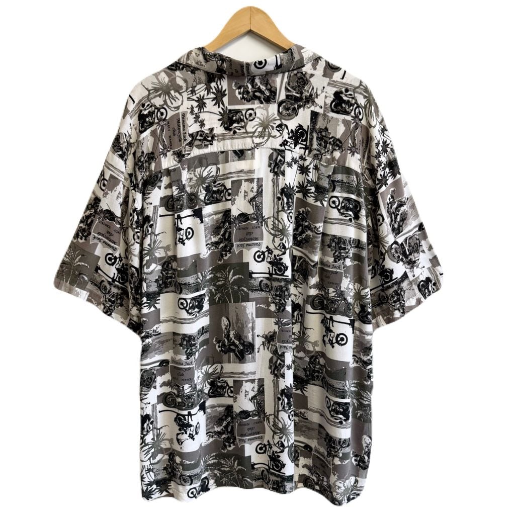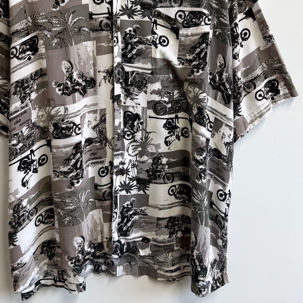Panama Jack レーヨンシャツ バイク 総柄 アロハシャツ 半袖シャツ 白×黒×多色 XXLサイズ No.P183