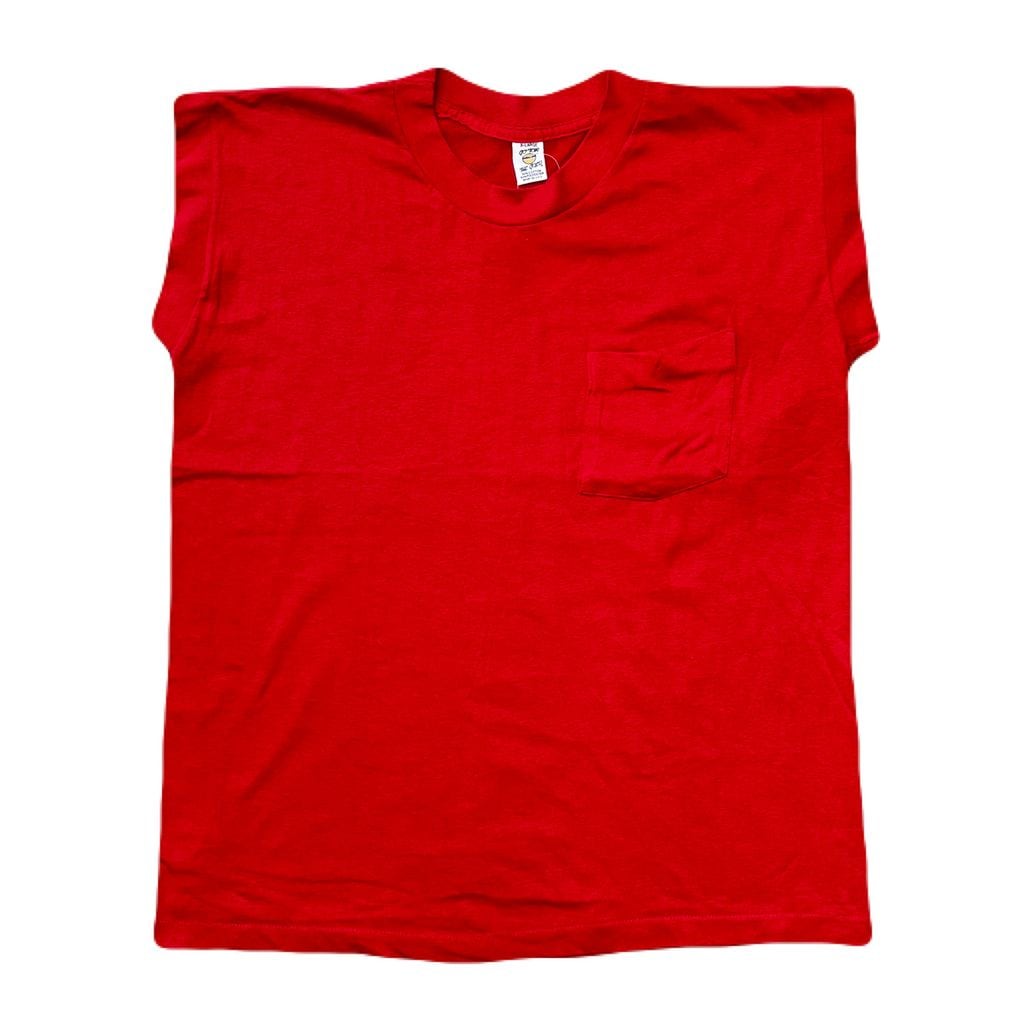 USA製 ~80s GO FOR THE GOLD MEDALLION ポケット付き ノースリーブ 赤 XLサイズ No.EA238