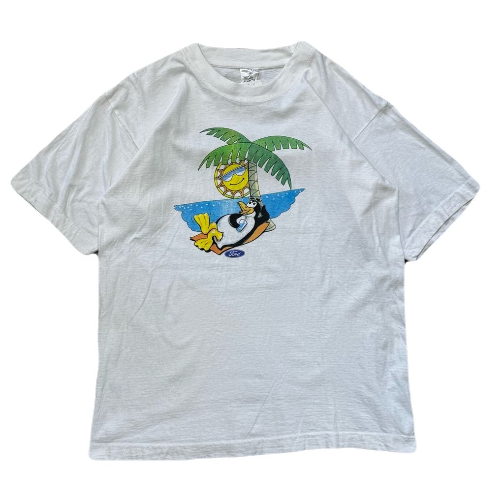 Ford beach フォード ペンギン ビーチ プリント Tシャツ 白 Mサイズ No.EA324