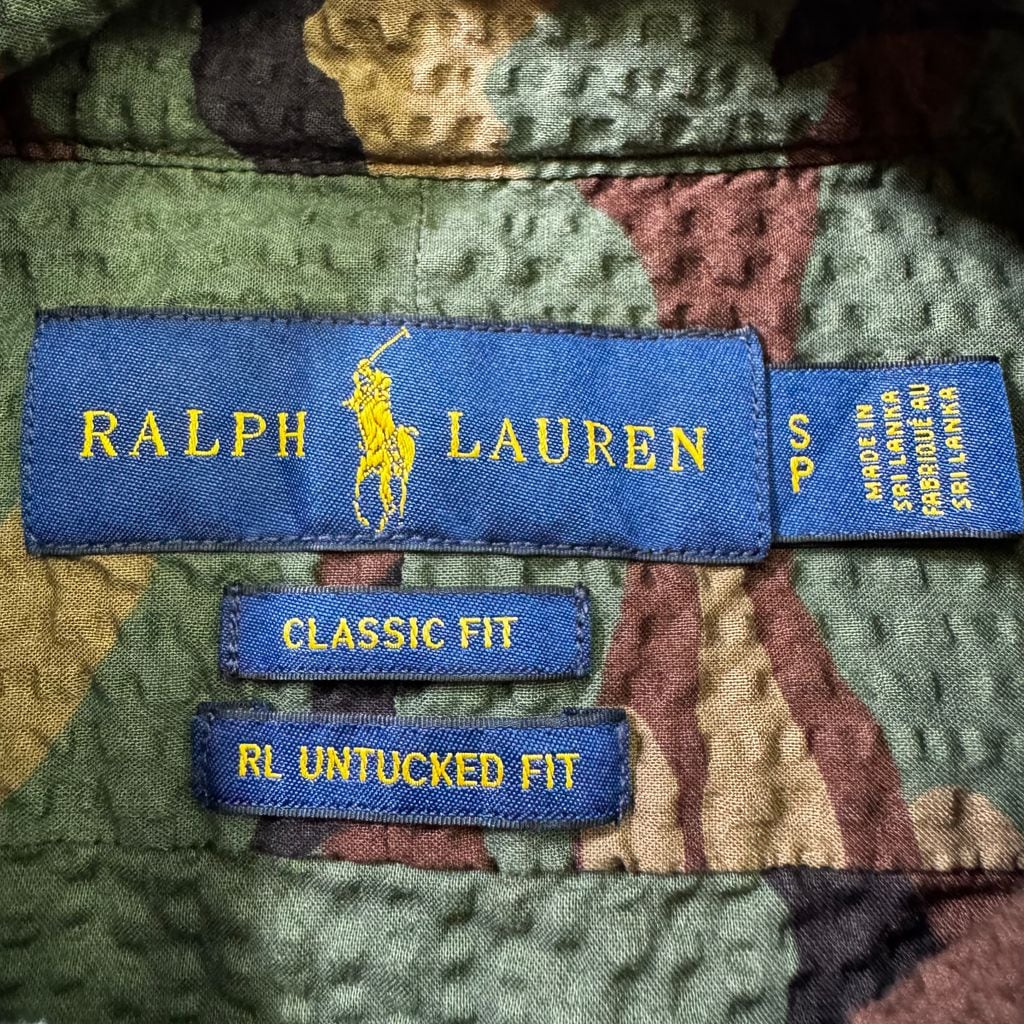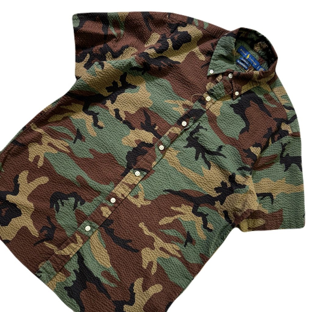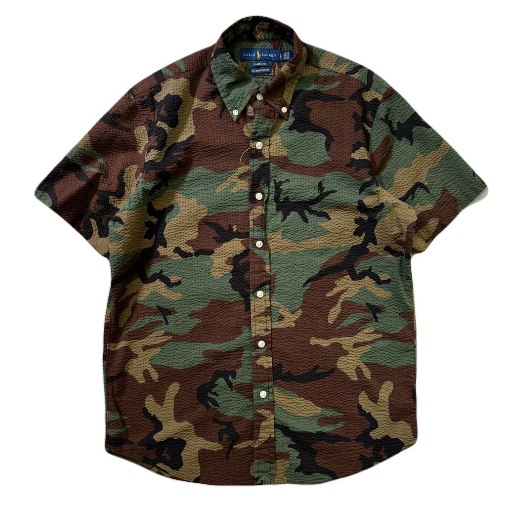 RALPH LAUREN ラルフローレン シアサッカー ミリタリー 迷彩 ボタンダウン 半袖シャツ Sサイズ No.EA330