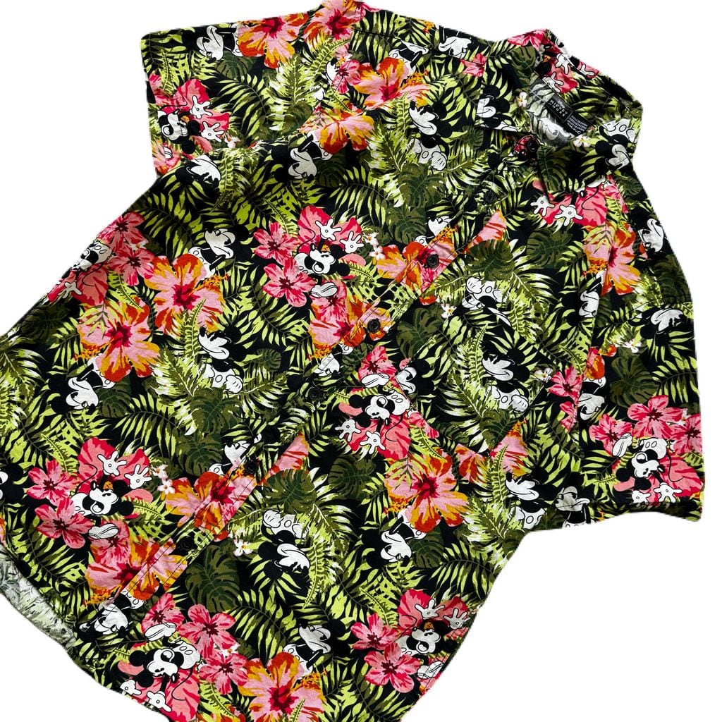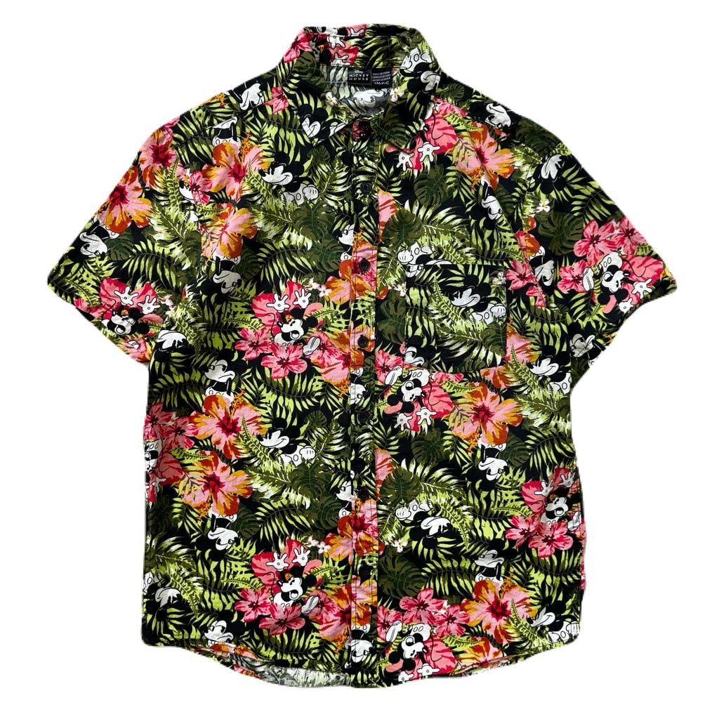 Disney Mickey Mouse Hawaiian ディズニー ミッキーマウス ハイビスカス柄 ハワイアン アロハシャツ 半袖シャツ ポケット付き 多色 サイズ S No.EA331