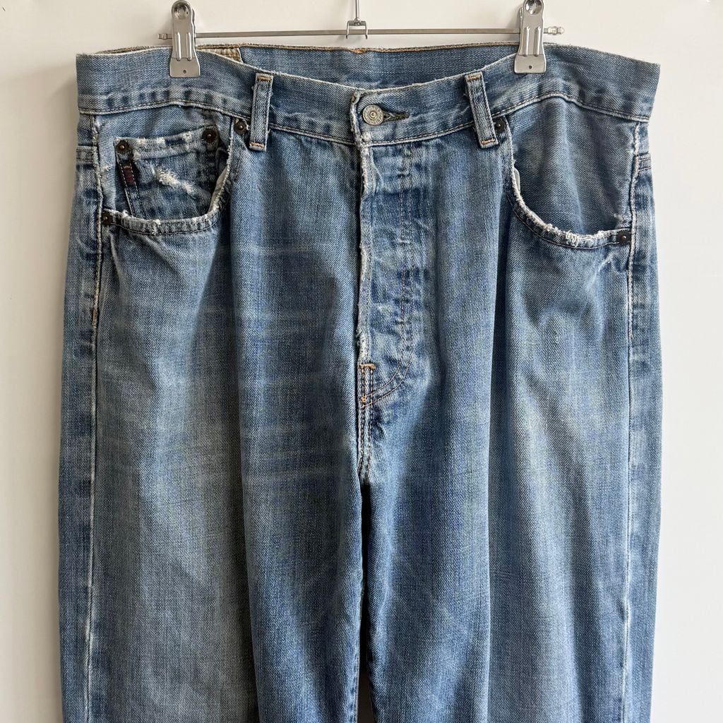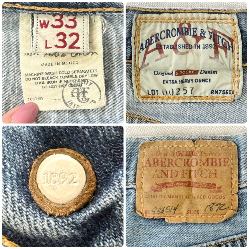ABERCROMBIE & FITCH アバクロンビーアンドフィッチ ボタンフライ デニムパンツ コットンパンツ ブルー W33×32 No.P186
