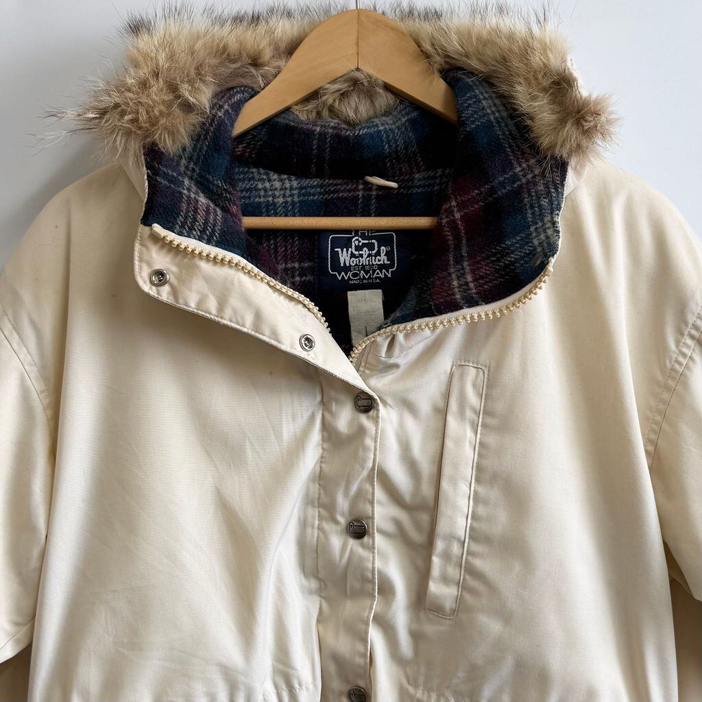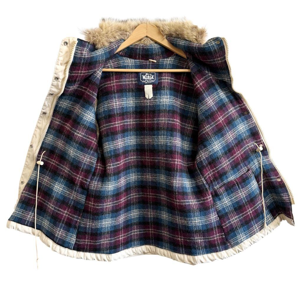 80's vintage ビンテージ USA製 Woolrich ウールリッチ マウンテンパーカー ウールライニング 裏地チェック柄 アイボリー Mサイズ No.P193
