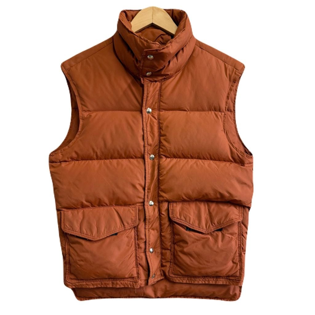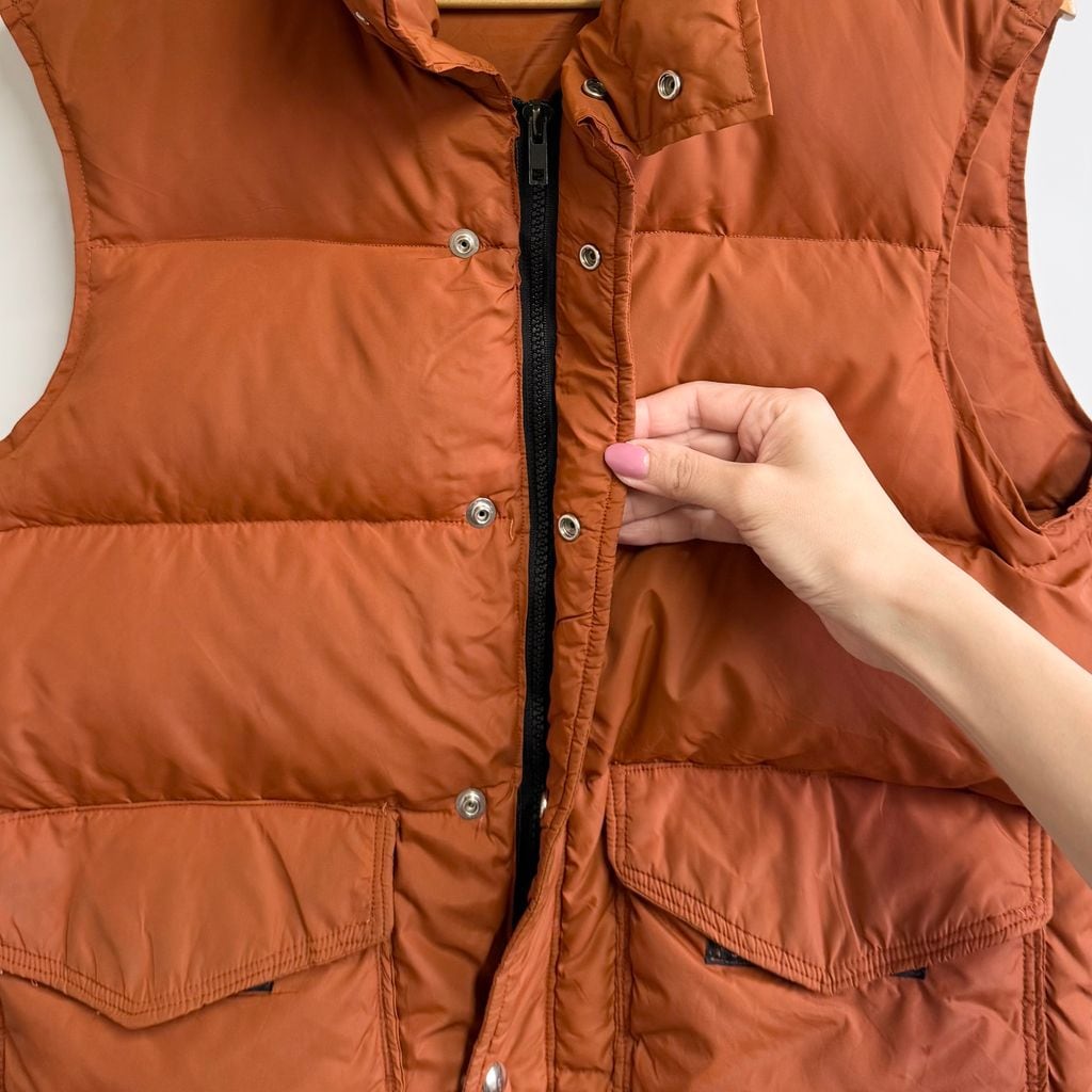 ダウンベスト 無地 スナップボタン×フルジップ 茶色 ブラウン No.P207