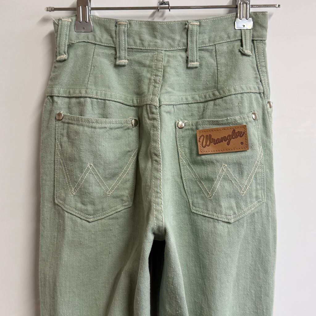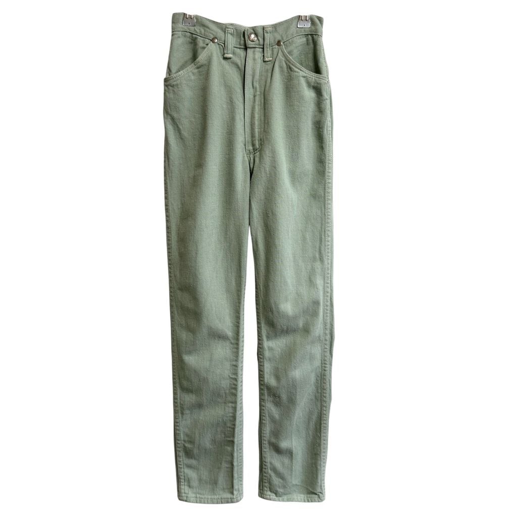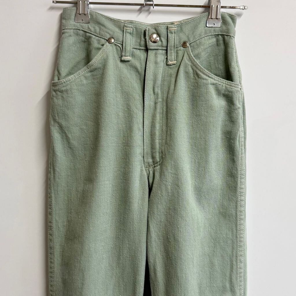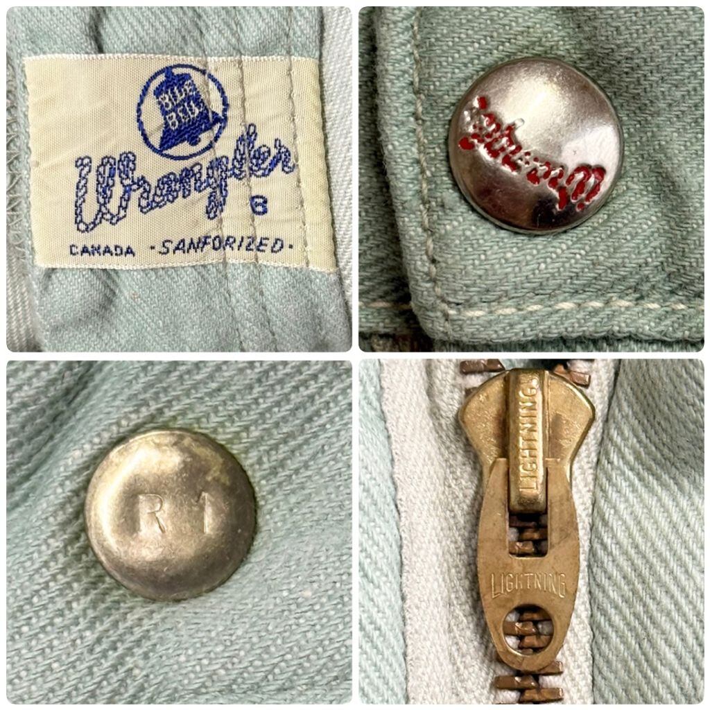 カナダ製 60's〜 vintage ビンテージ Wrangler ラングラー BLUE BELL ライトニングジップ LIGHTNING デニムパンツ ライトグリーン サイズ8 No.P210