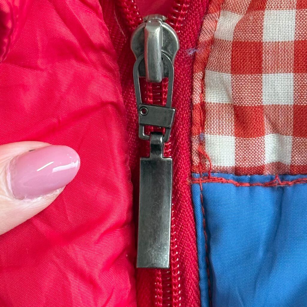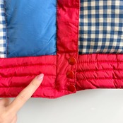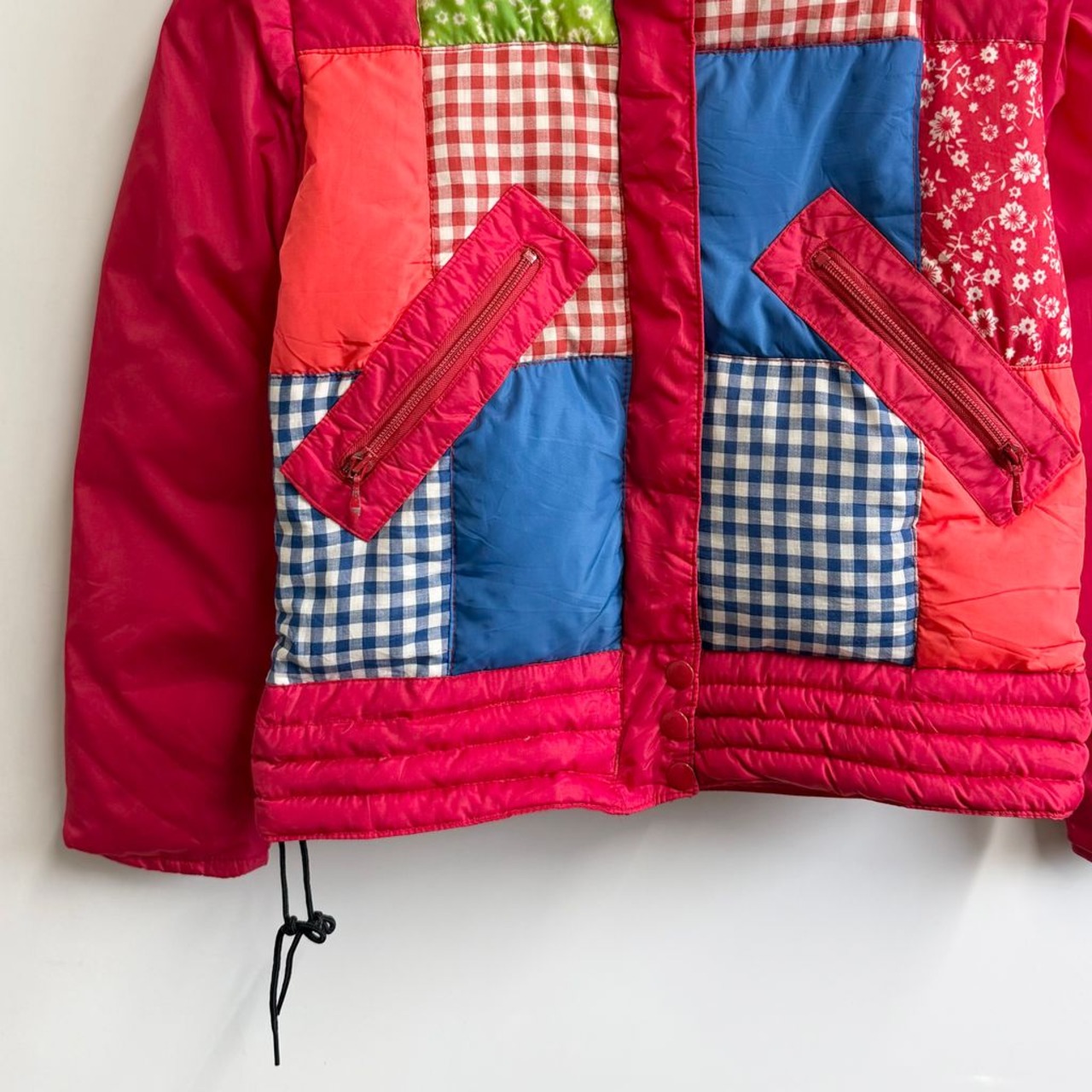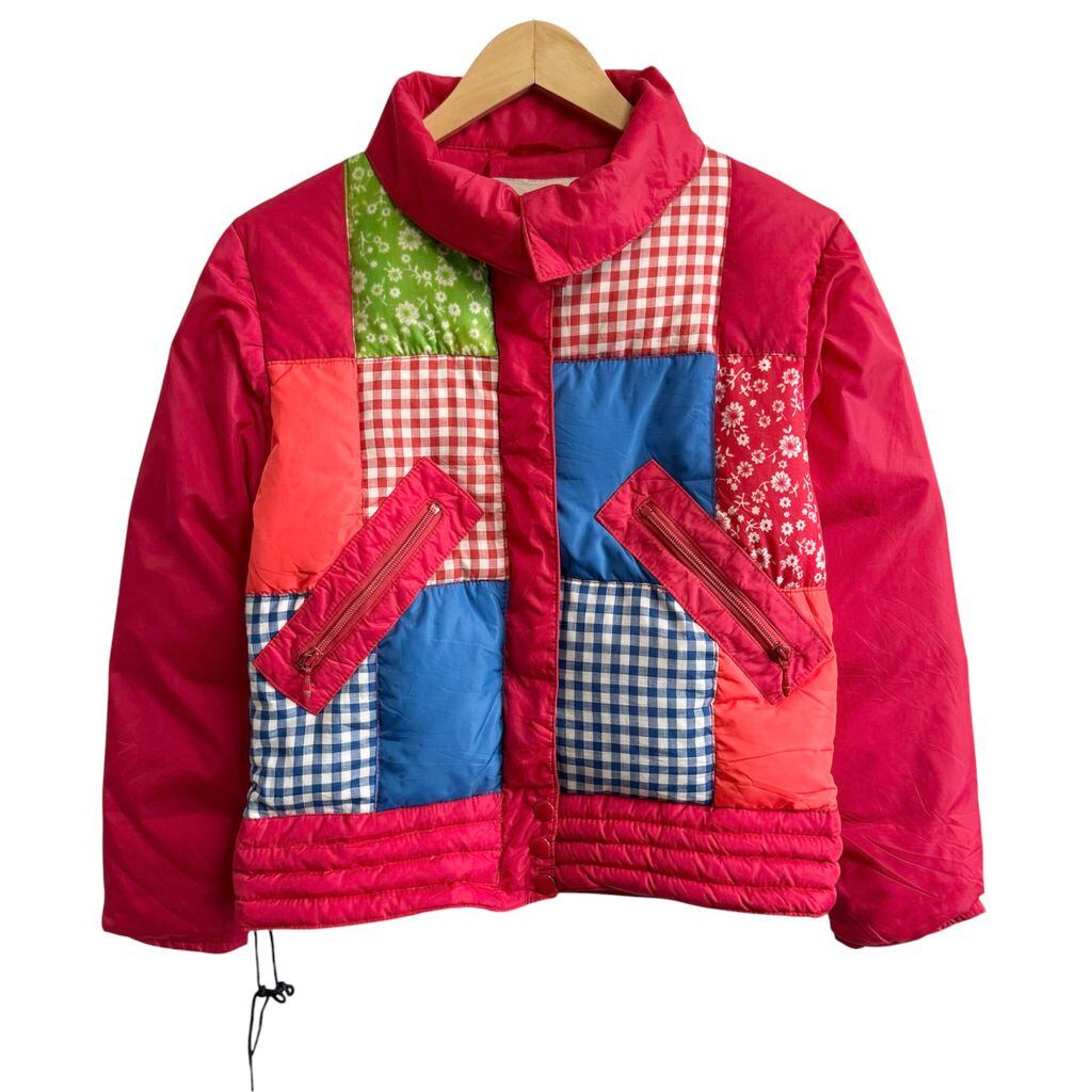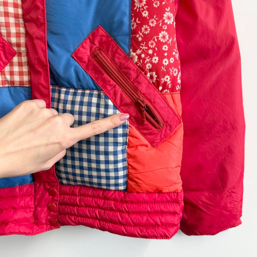 (レディース) Kristin ダウンジャケット パッチワークデザイン 赤×多色 Sサイズ No.P216