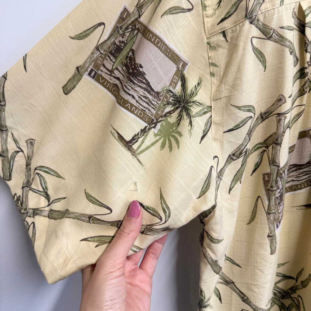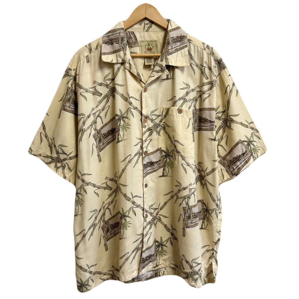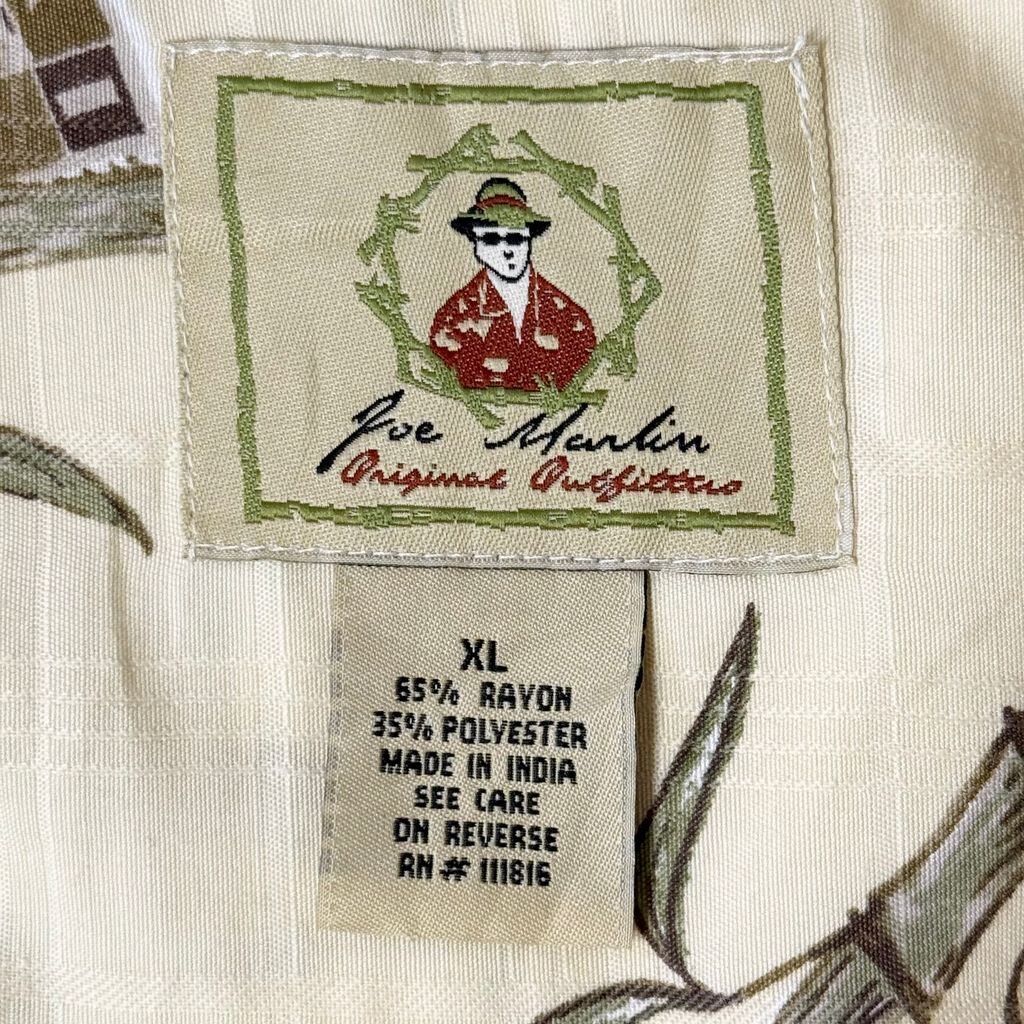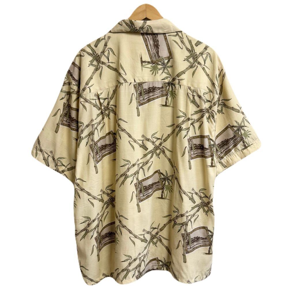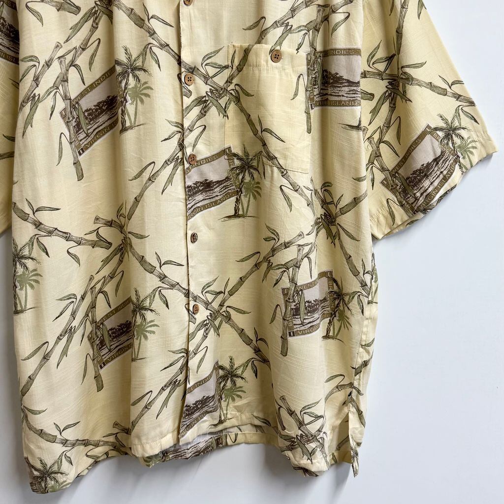 Joe Marlin アロハシャツ 竹 ヤシの木 半袖シャツ ライトイエロー×多色 XLサイズ No.P226