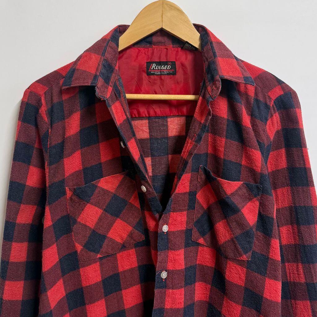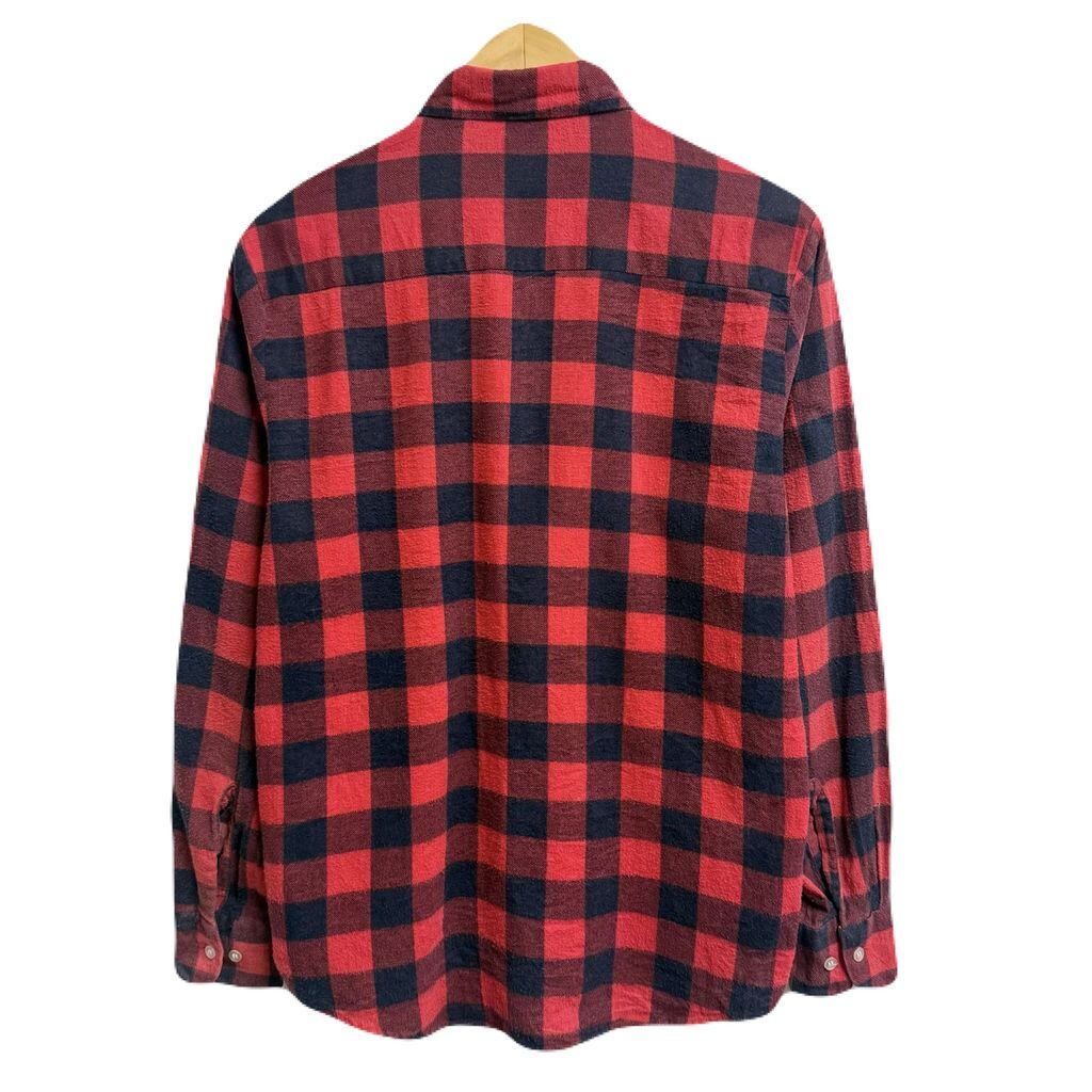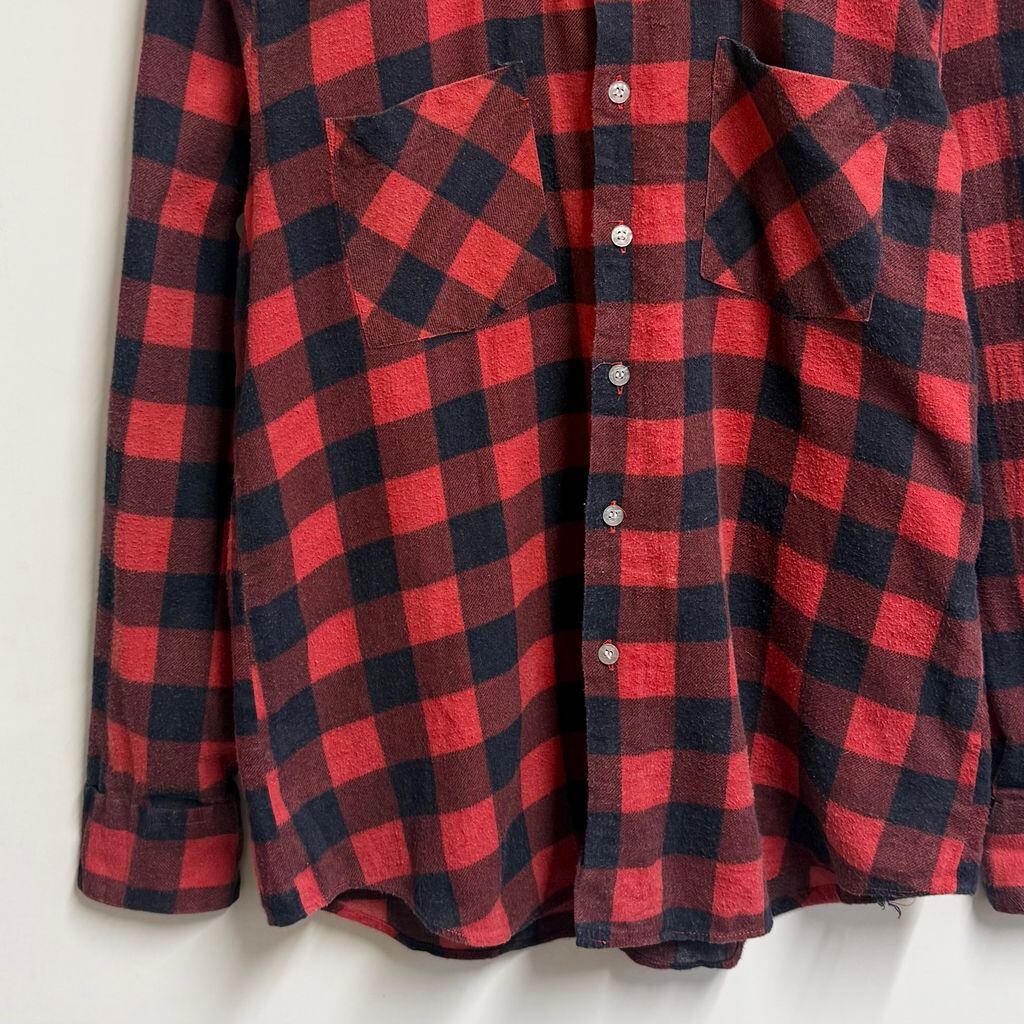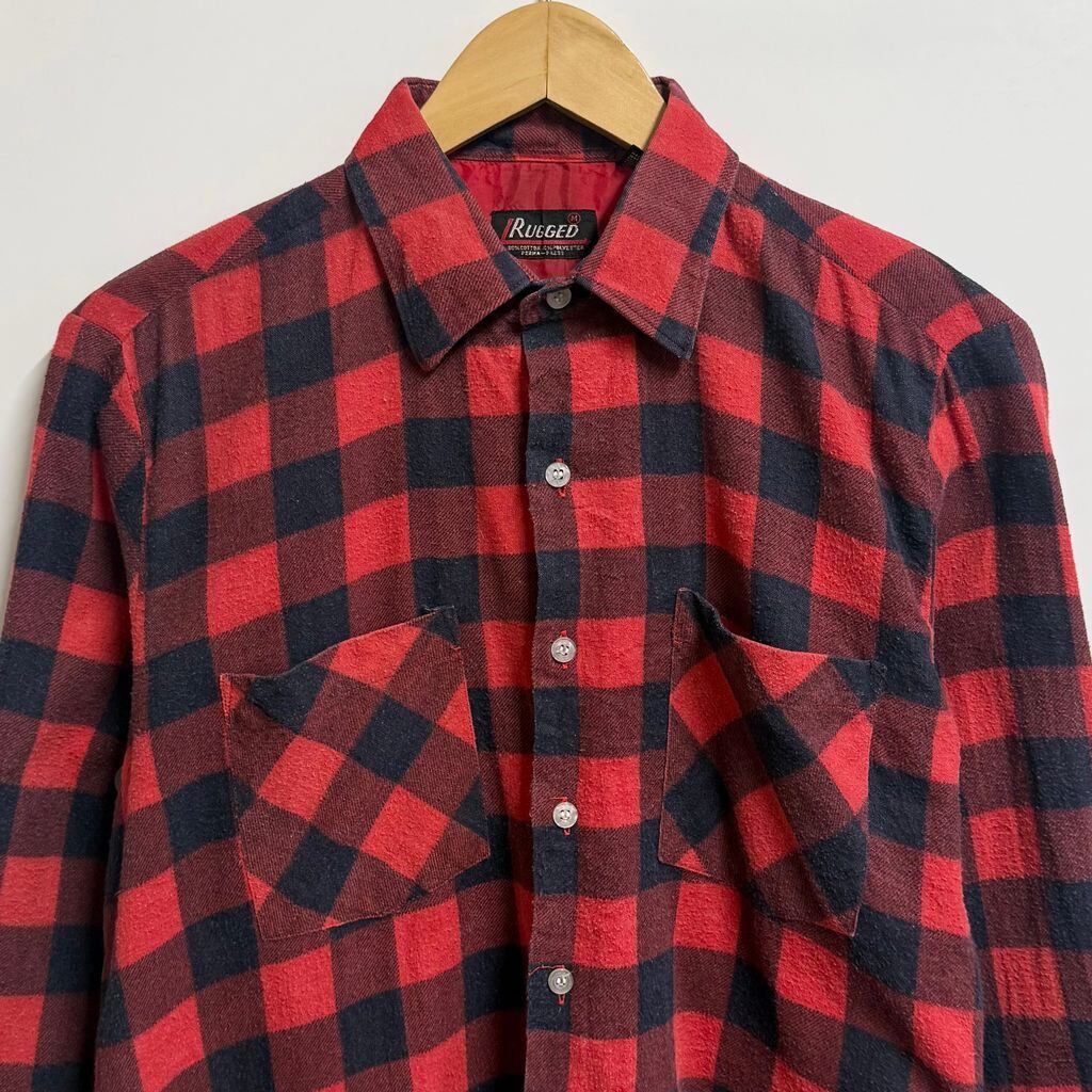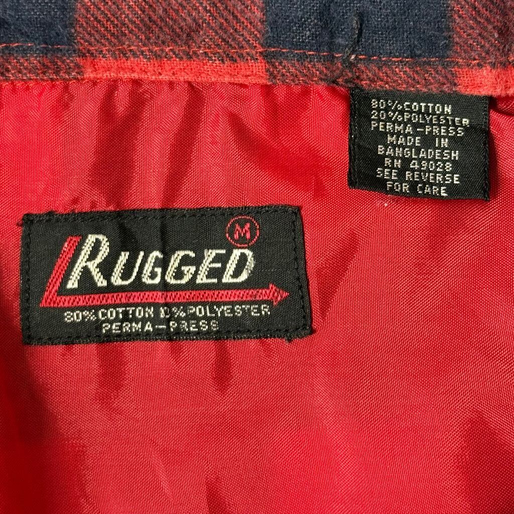 RUGGED チェック柄 ポケット付き 長袖シャツ 赤×黒ネイビー Mサイズ No.P230