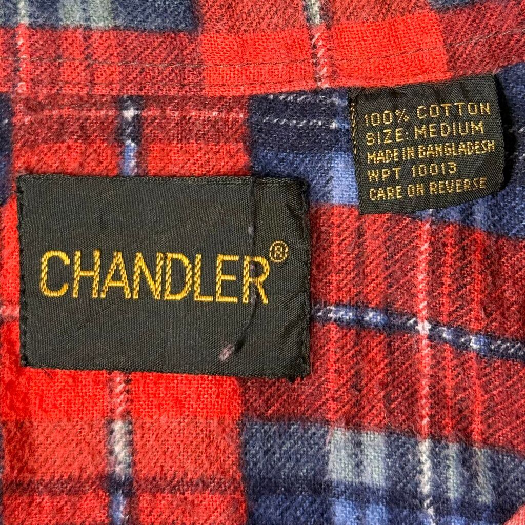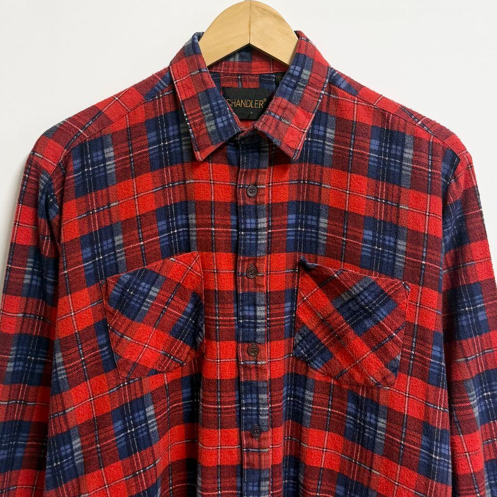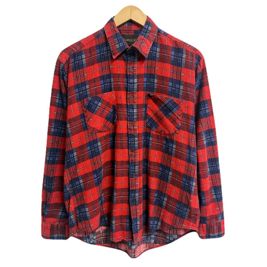 CHANDLER コットンシャツ チェック柄 ポケット付き 長袖シャツ 赤×紺×多色 Mサイズ No.P231