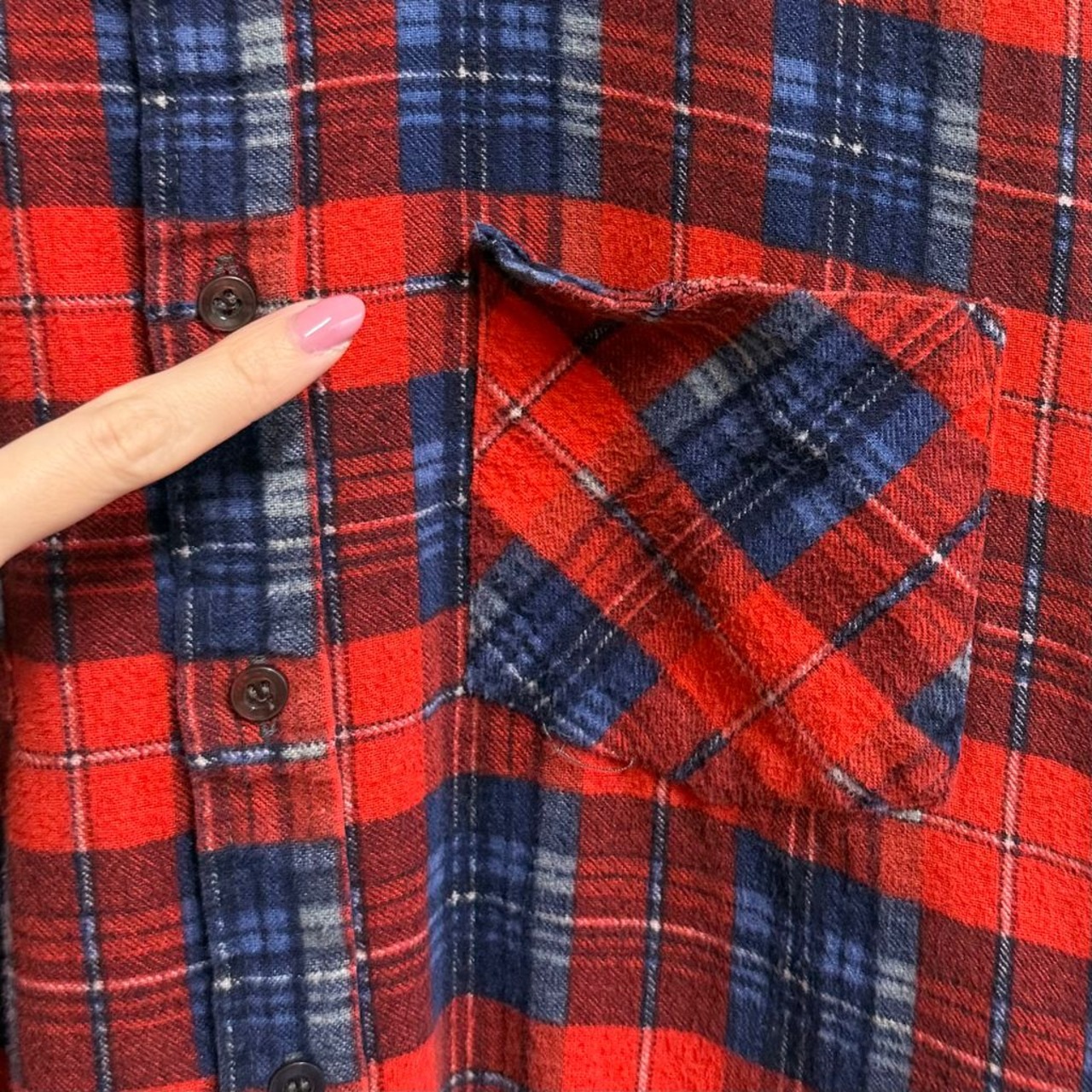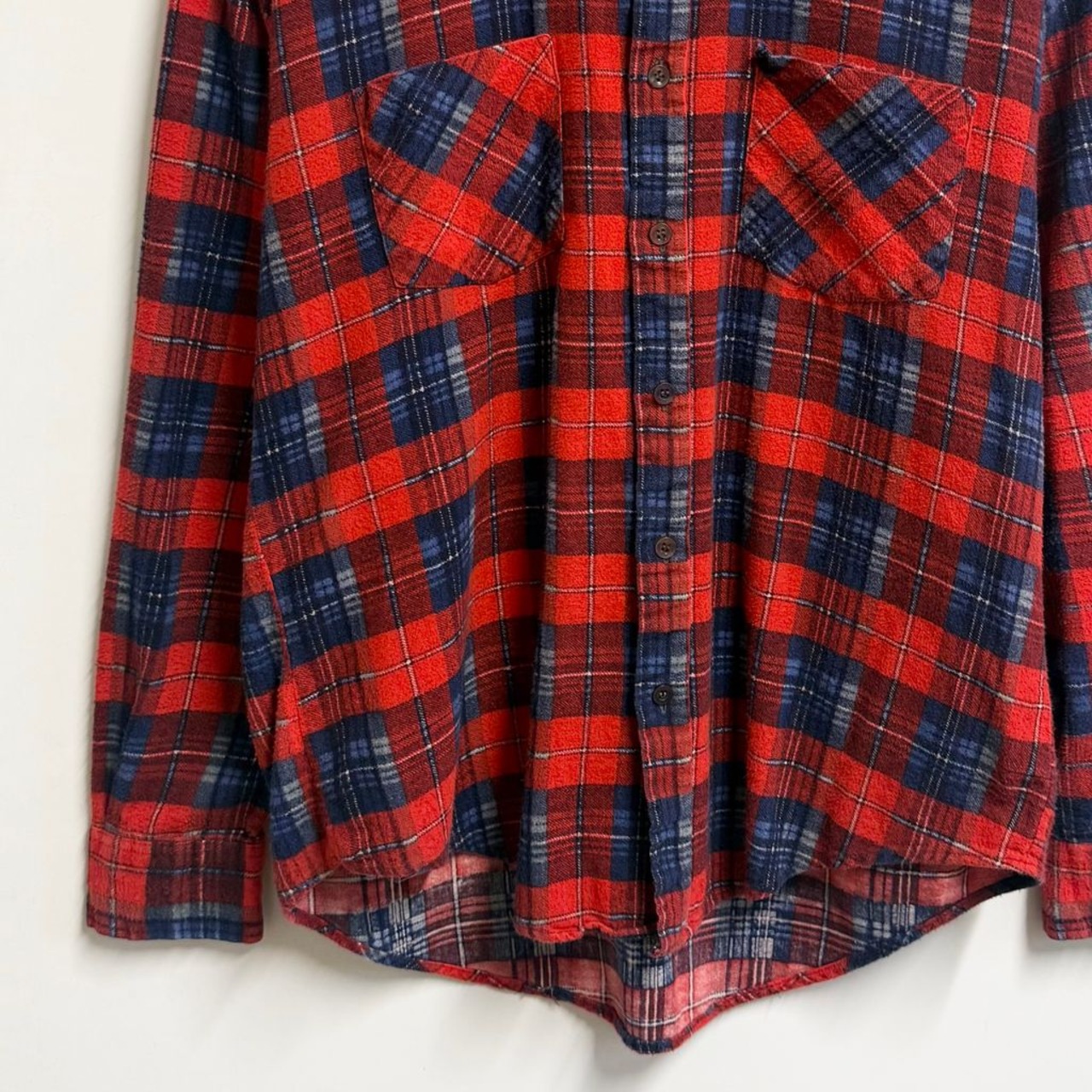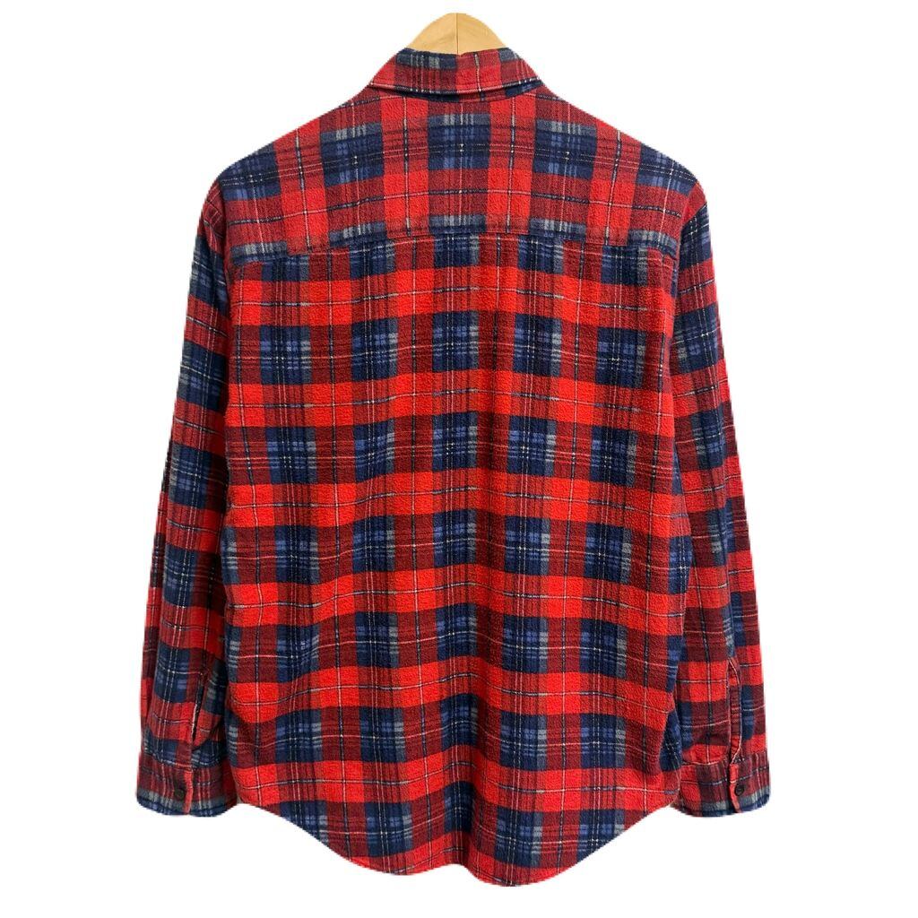CHANDLER コットンシャツ チェック柄 ポケット付き 長袖シャツ 赤×紺×多色 Mサイズ No.P231