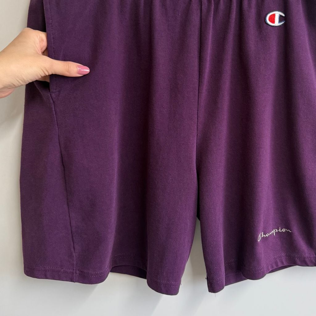 USA製 Champion チャンピオン スウェットショーツ ロゴ刺繍 紫 パープル XLサイズ No.P232