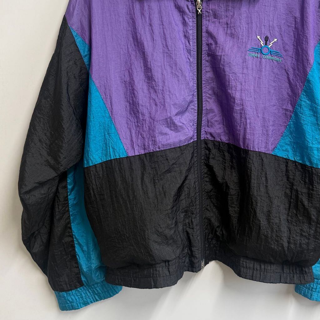 JIMMY CONNORS ナイロンジャケット ロゴ刺繍 マルチカラー ブルー×パープル×黒 Sサイズ No.P239