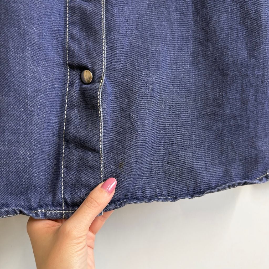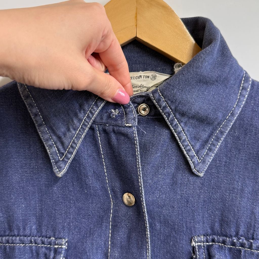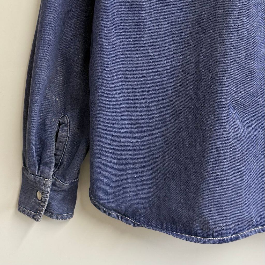 70's〜 vintage ビンテージ Kmart バットダイデニムシャツ エポレット スナップボタン ブルー系 サイズ38 No.P243