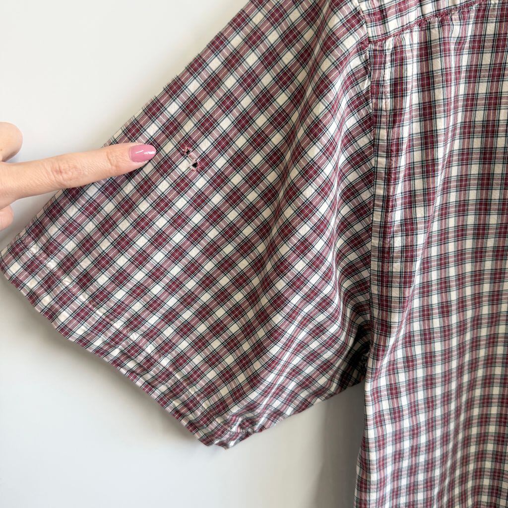 Eddie Bauer エディーバウアー ボタンダウンシャツ コットンシャツ チェック柄 ポケット付き 半袖シャツ 白×黒×ワインレッド×多色 Lサイズ No.P269