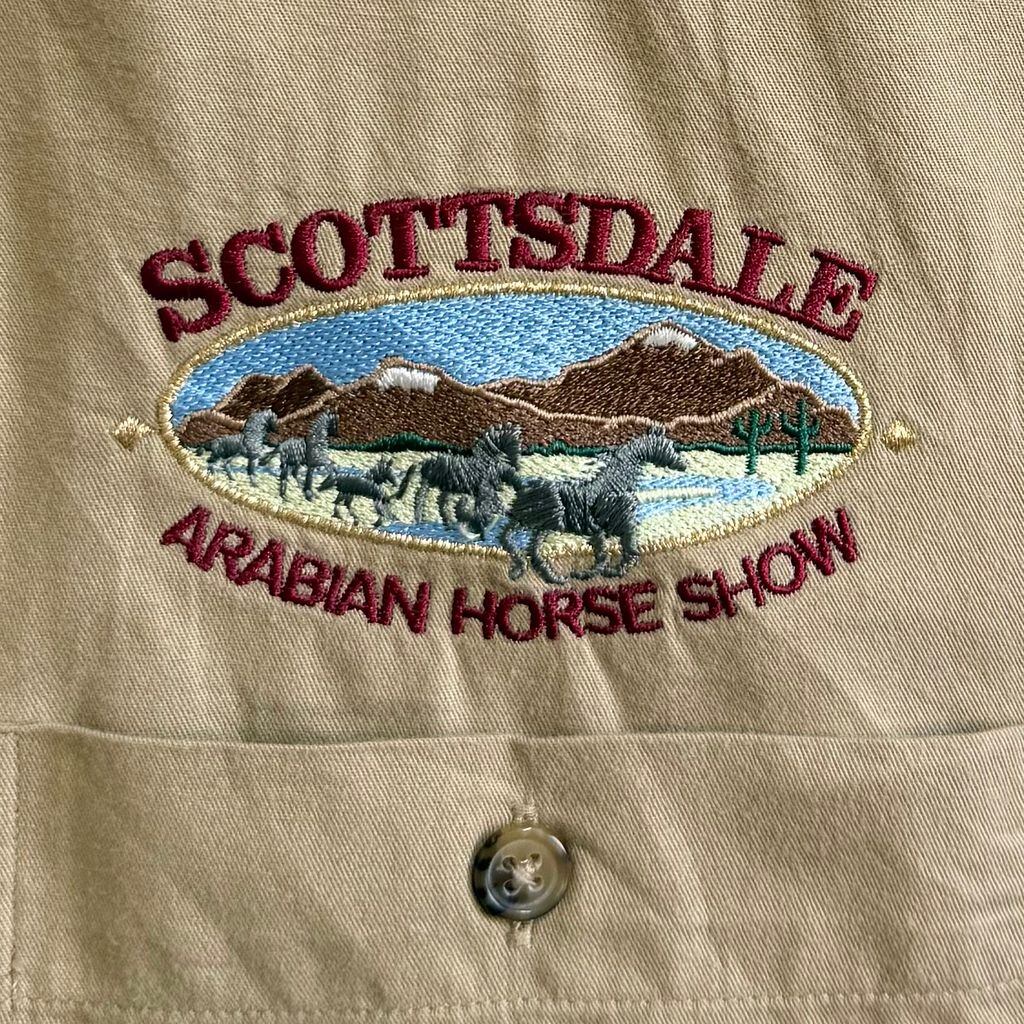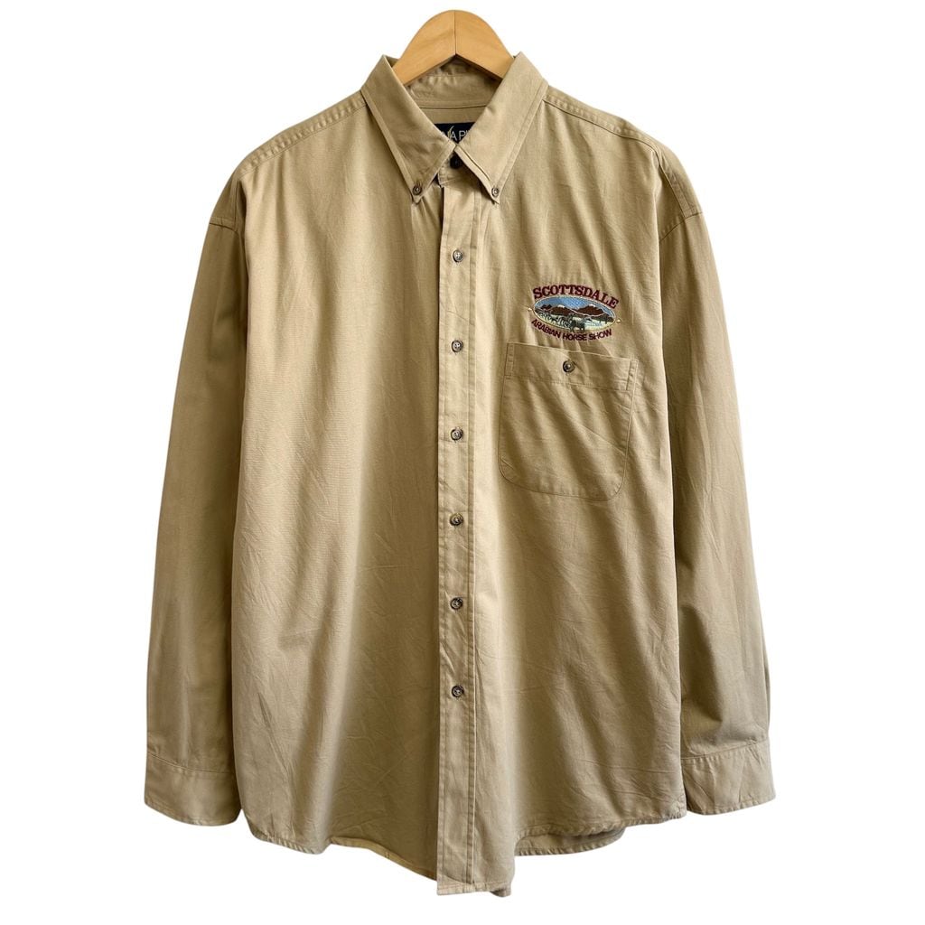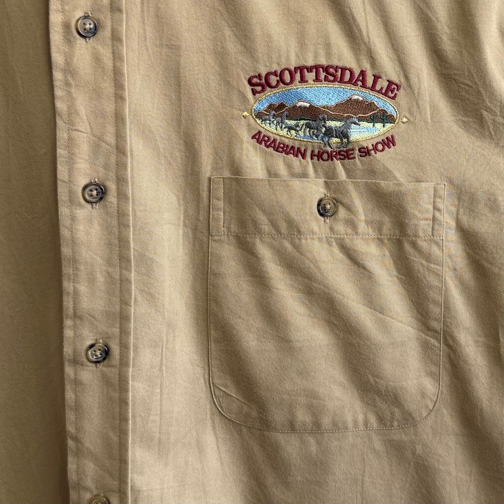 LUNA PIER アリゾナ アラビアンホースショー 馬 刺繍 ワークシャツ ボタンダウンシャツ 長袖シャツ ベージュ Lサイズ No.P273