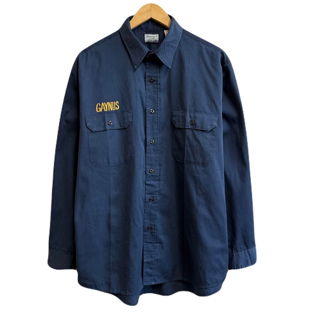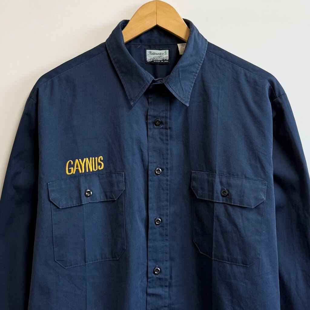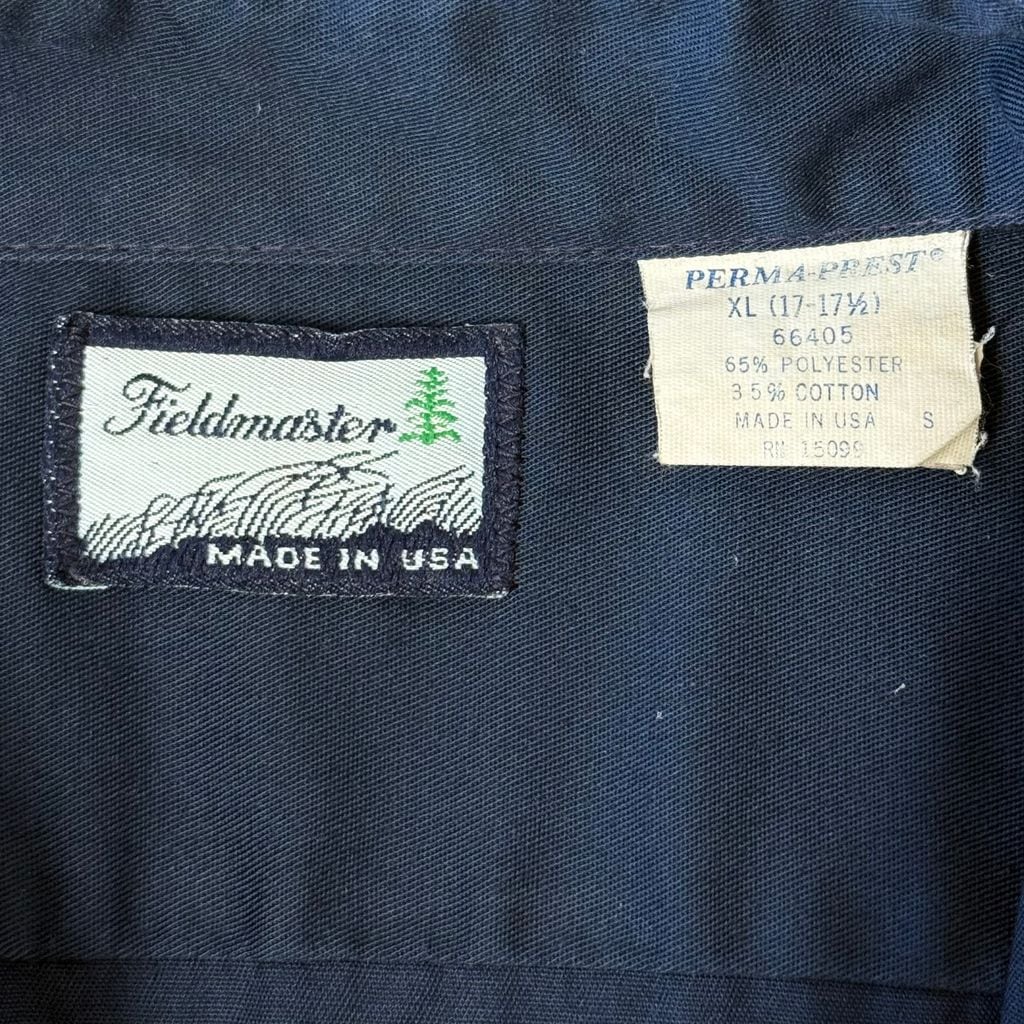 USA製 Fieldmaster ワークシャツ 刺繍 長袖シャツ 紺 ネイビー XLサイズ No.P275