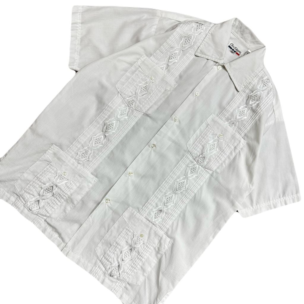 90sChic Elegani キューバシャツ メキシカン 刺繍 半袖シャツ 白 Mサイズ No.EA338