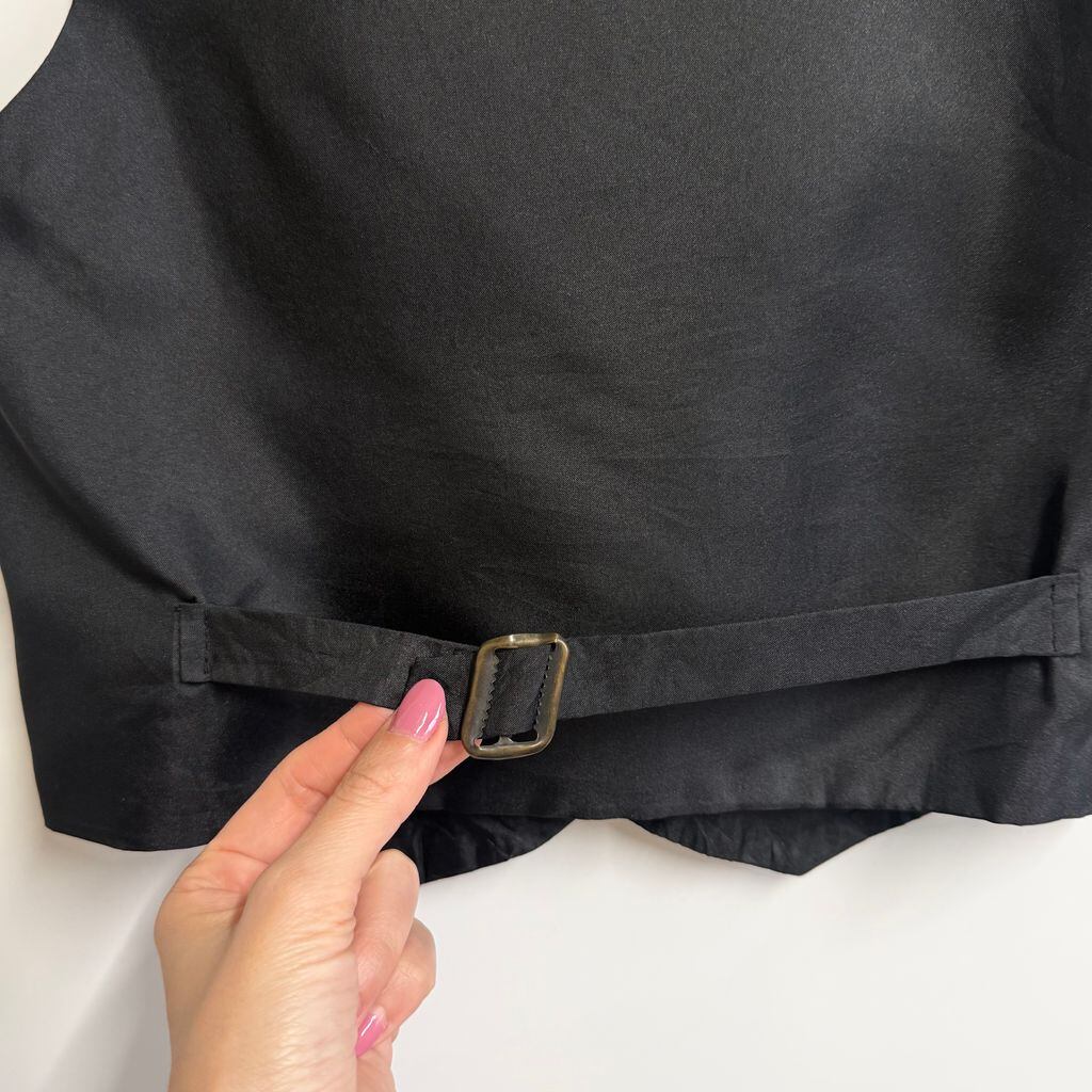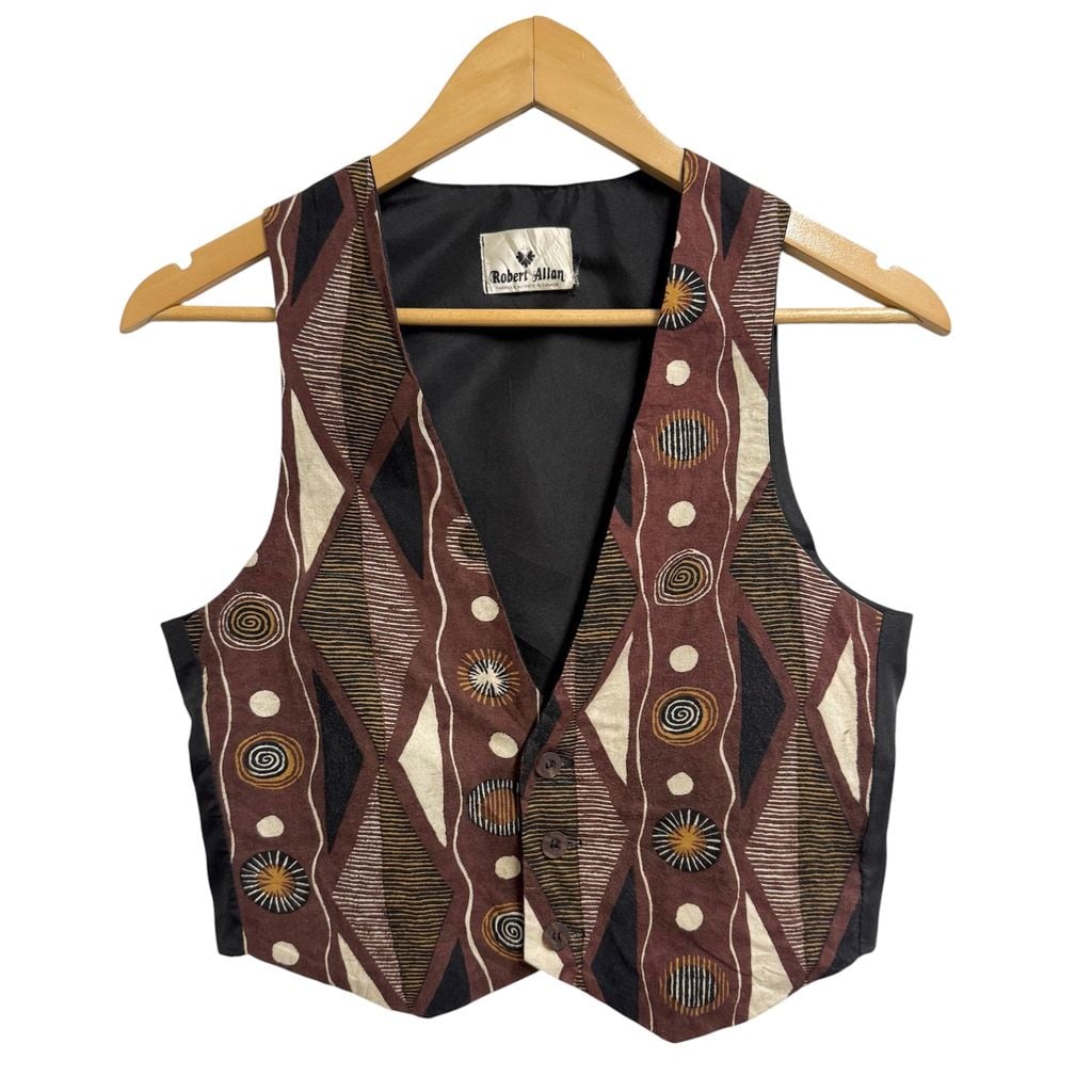 カナダ製 Robert Allan ビンテージ柄ベスト ジレ 幾何学模様 黒×多色 No.P254