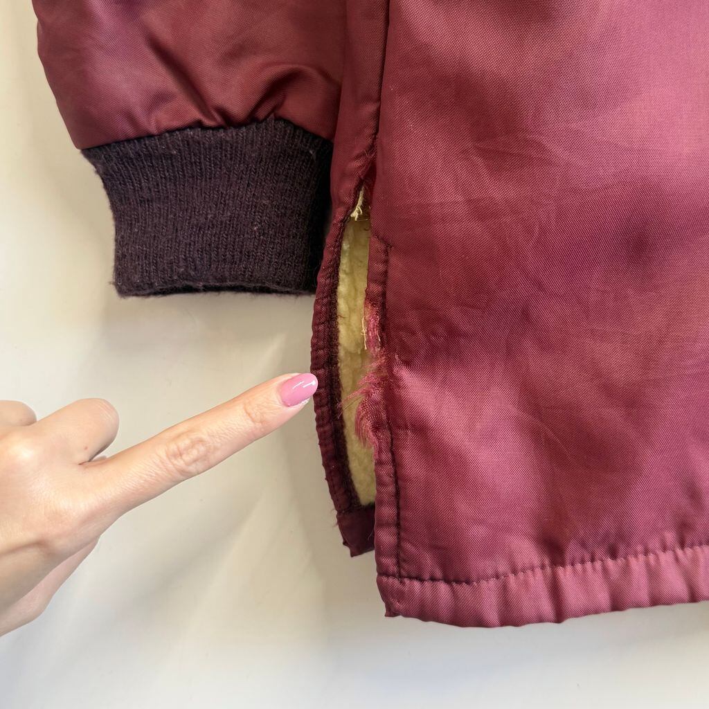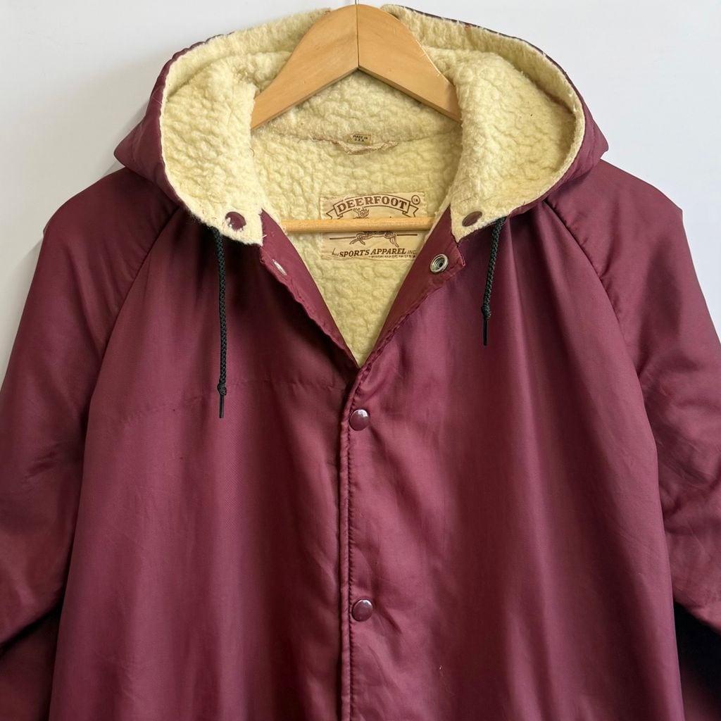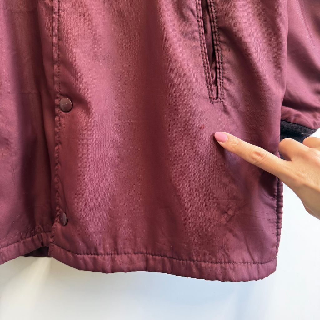 USA製 DEERFOOT 裏ボア ナイロンコーチジャケット フード付き TALON タロンジップ スナップボタン ワインレッド Sサイズ No.P281