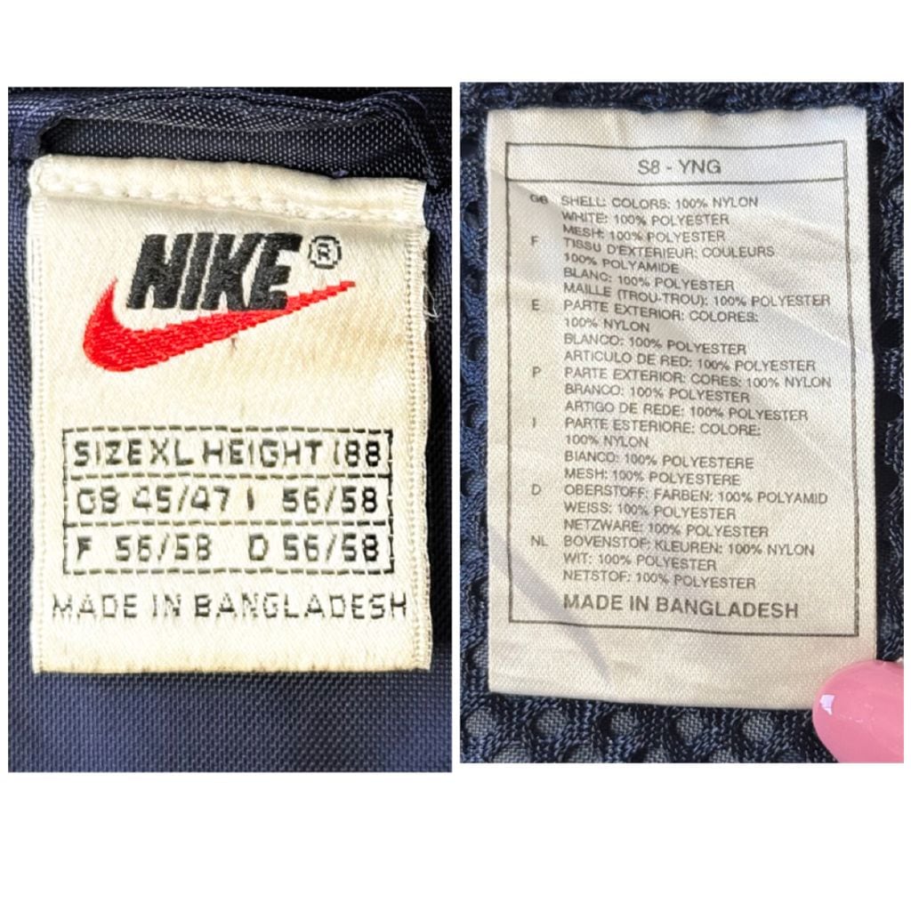 90's NIKE ナイキ ナイロンジャケット ウィンドブレーカー ロゴ刺繍 ワッペン 裏地メッシュ 紺×白 XLサイズ No.P283