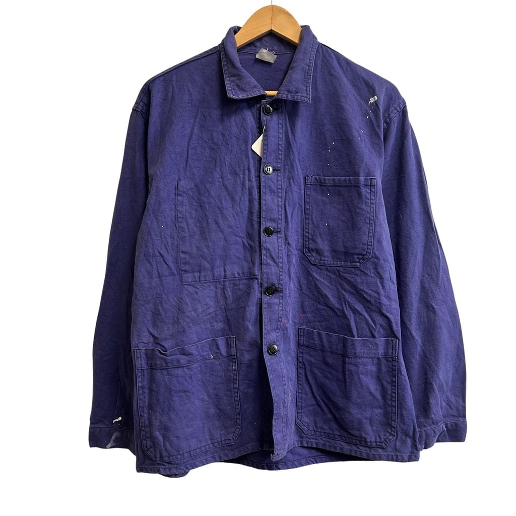 Euro vintage モールスキンジャケット フレンチワークジャケット ユーロワーク コットンツイル カバーオール 紺 navy blue NO.T308