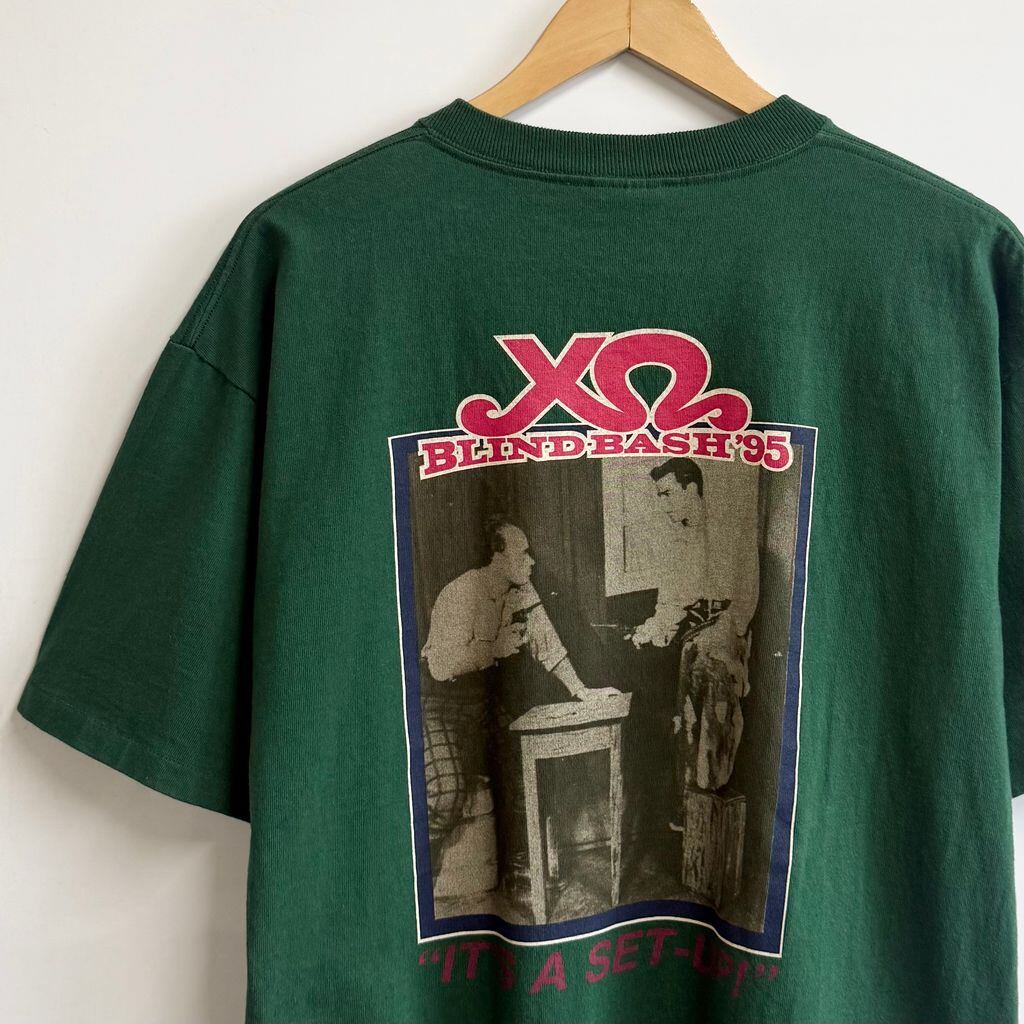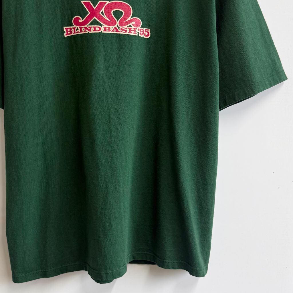 90's USA製 ONEITA オニータ BLIND BASH ブラインド バッシュ 95 シングルステッチ 半袖Tシャツ 深緑 ダークグリーン Lサイズ No.P314