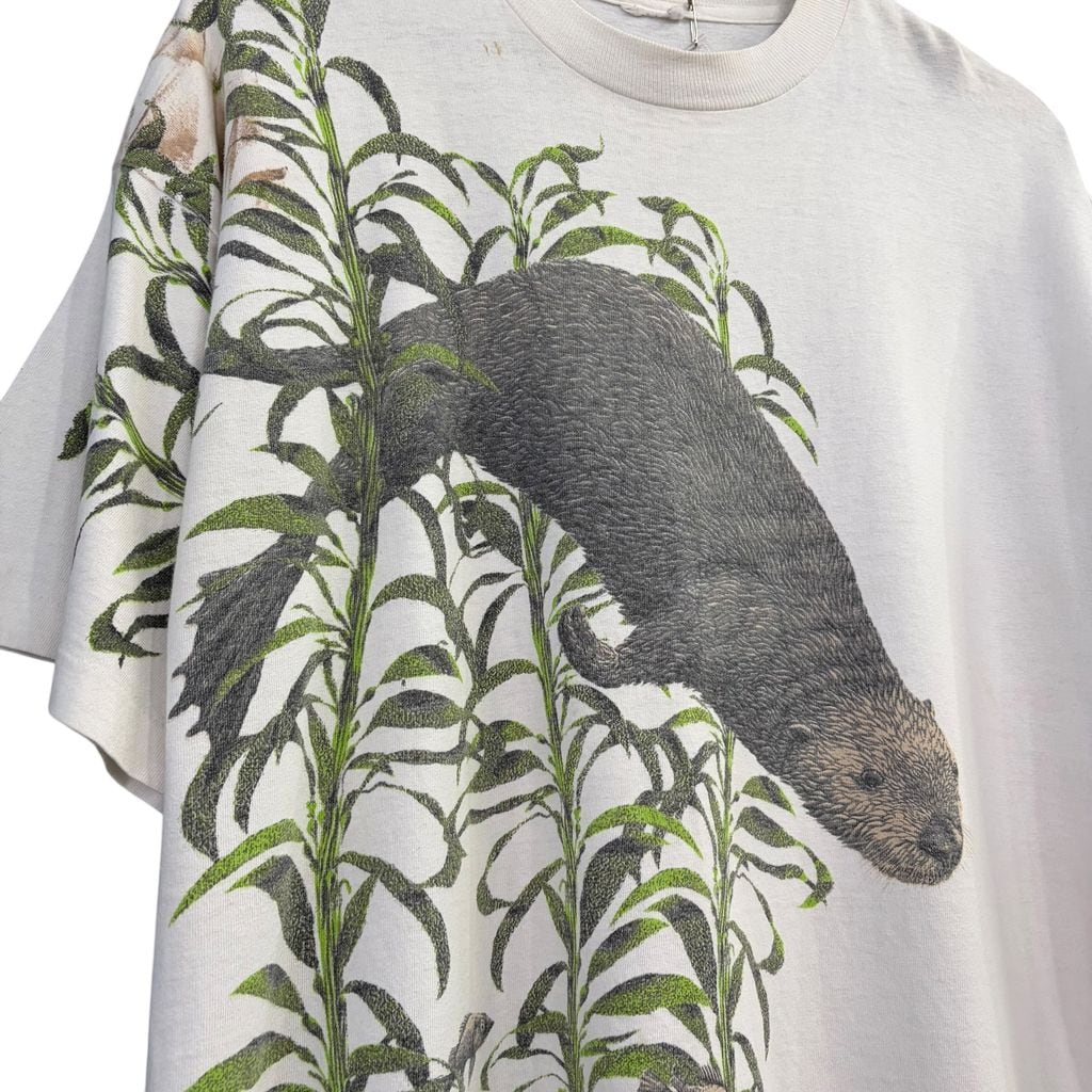 ~90s アニマルプリントTシャツ animal ラッコ 両面プリント シングルステッチ No.A035