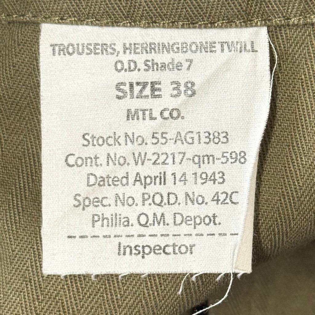 M43 HBT ヘリンボーンツイル リプロ ボタンフライ カーゴパンツ カーキ サイズ38 No.P323