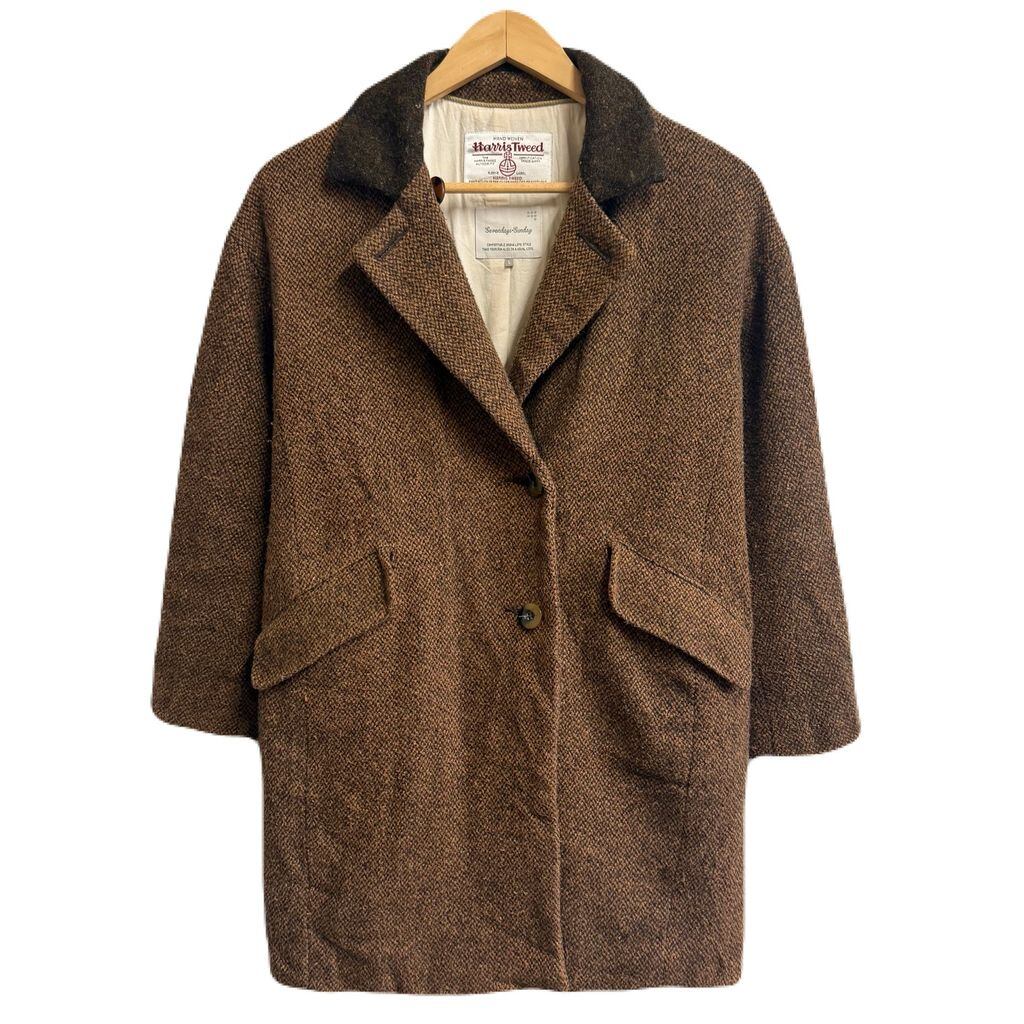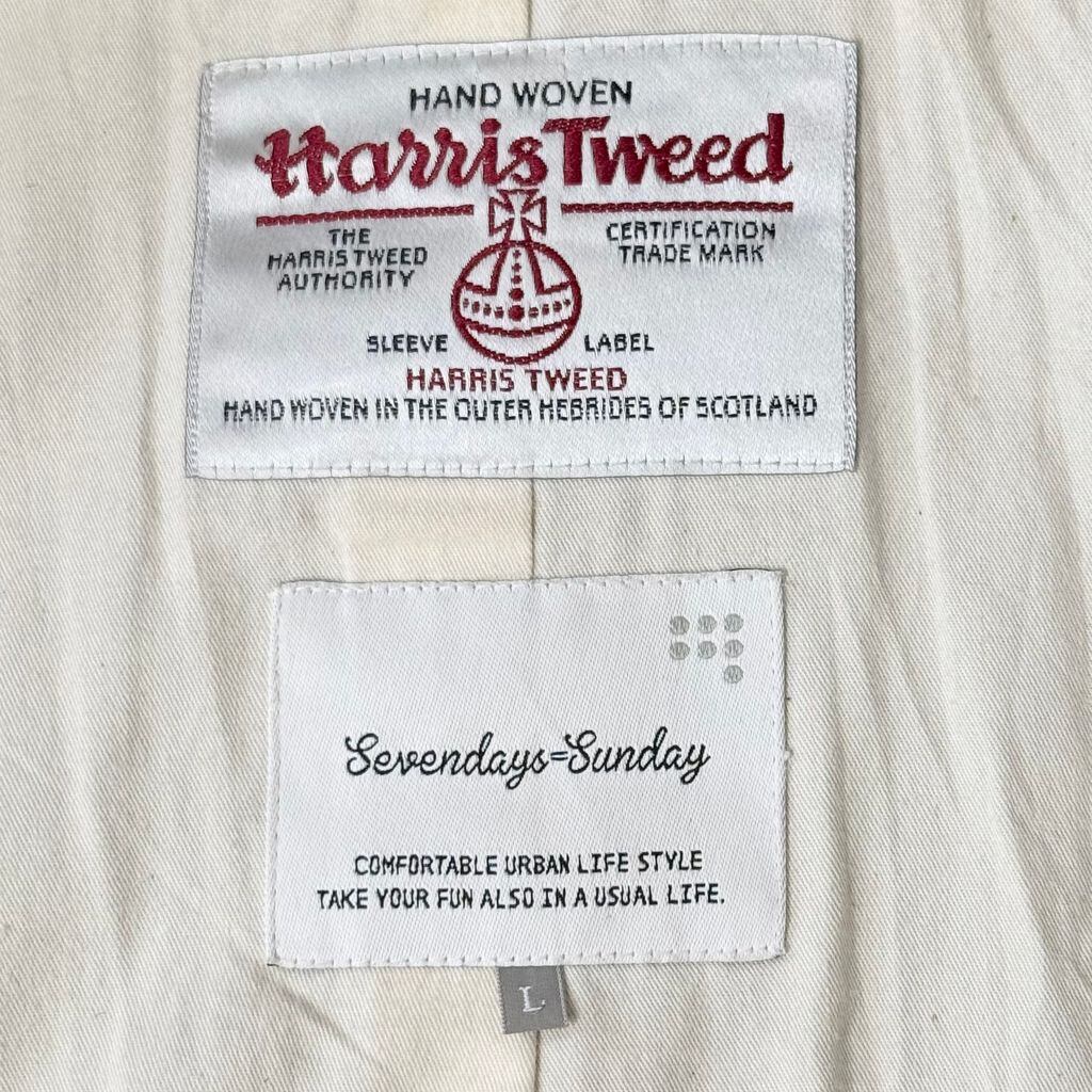 Sevendays=Sunday Harris Tweed ハリスツイード ウールチェスターコート 茶色 ブラウン×多色 Lサイズ No.P326