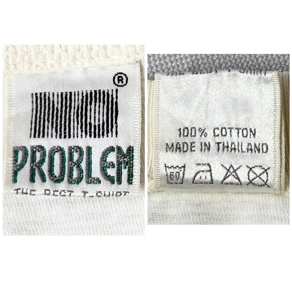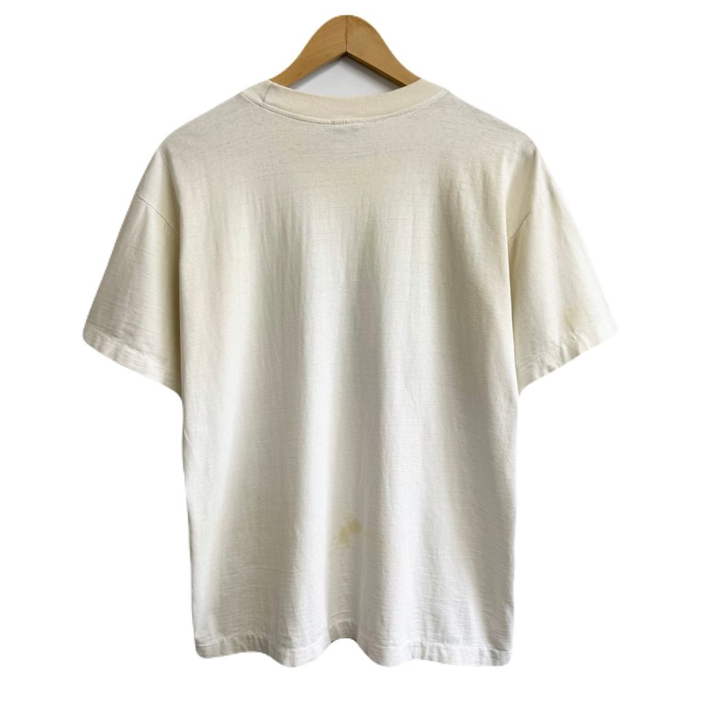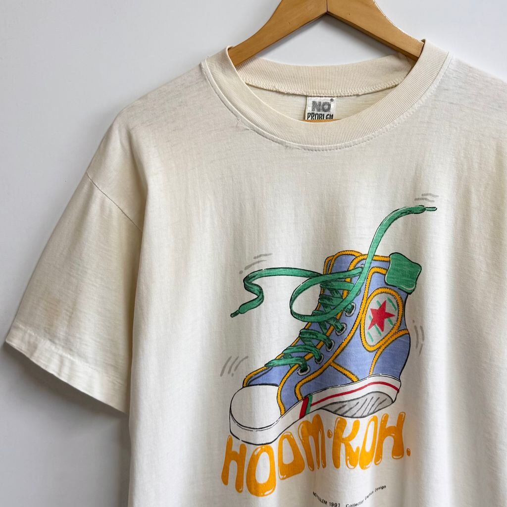 90's vintage ビンテージ NO PROBLEM ハイカット コンバース風 スニーカー イラスト シングルステッチ 半袖Tシャツ アイボリー No.P332