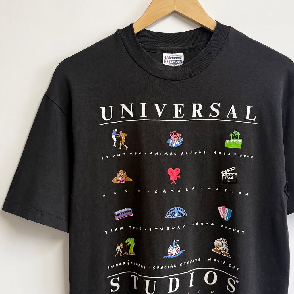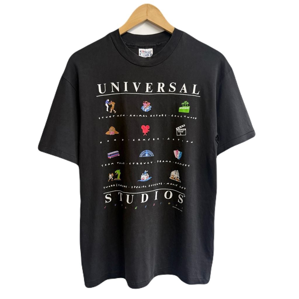 90's USA製 Hanes ヘインズ ボロ UNIVERSAL STUDIOS ユニバーサルスタジオ アトラクション 映画 アイコン ポップ シングルステッチ 半袖Tシャツ 黒 Mサイズ No.P339