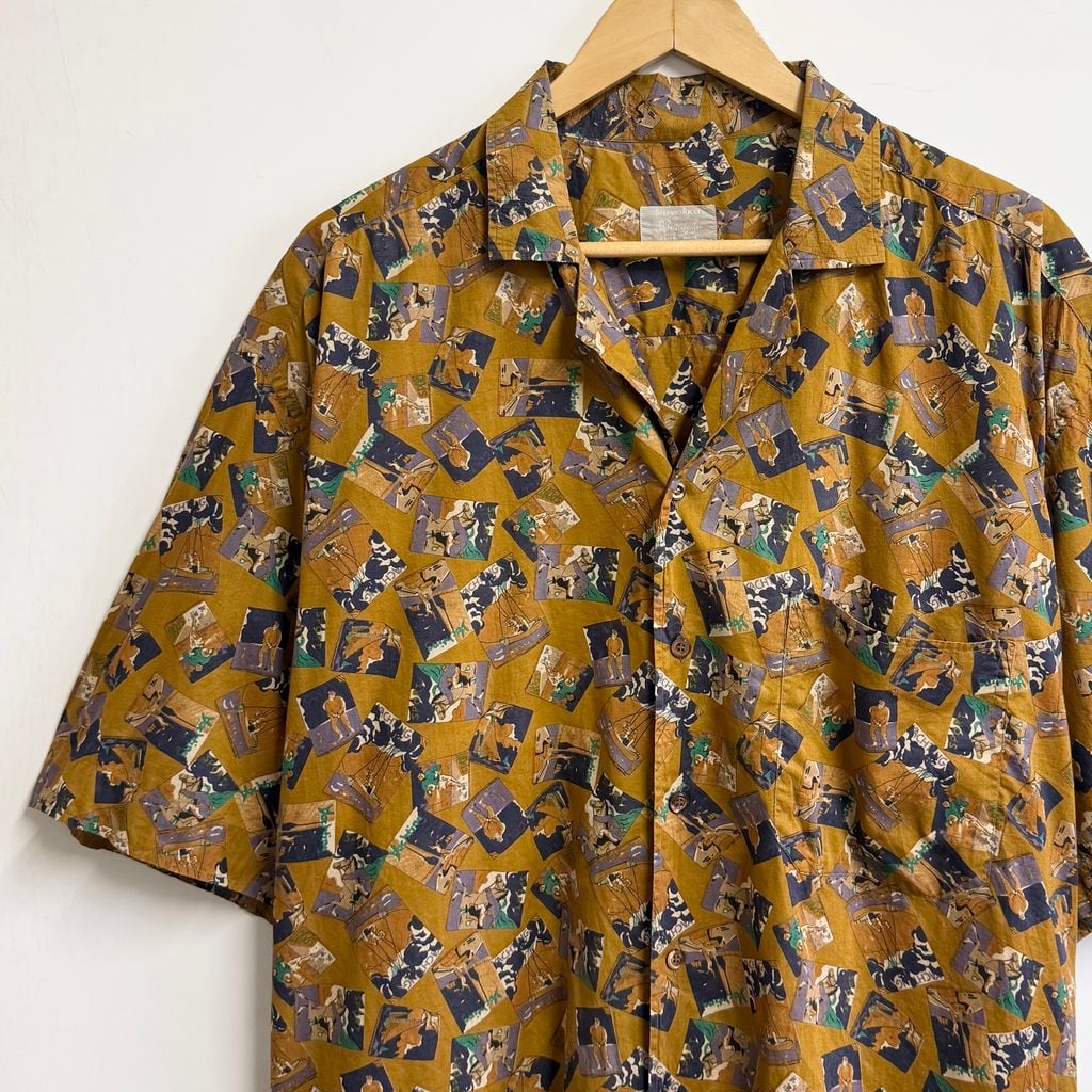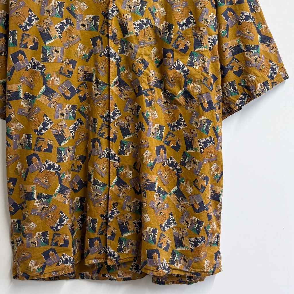 STEFANO RICCI Battaglia 総柄 柄シャツ ヨット ゴルフ 乗馬 スポーツ オープンカラー 開襟シャツ 半袖シャツ マスタード からし色×多色 No.P342