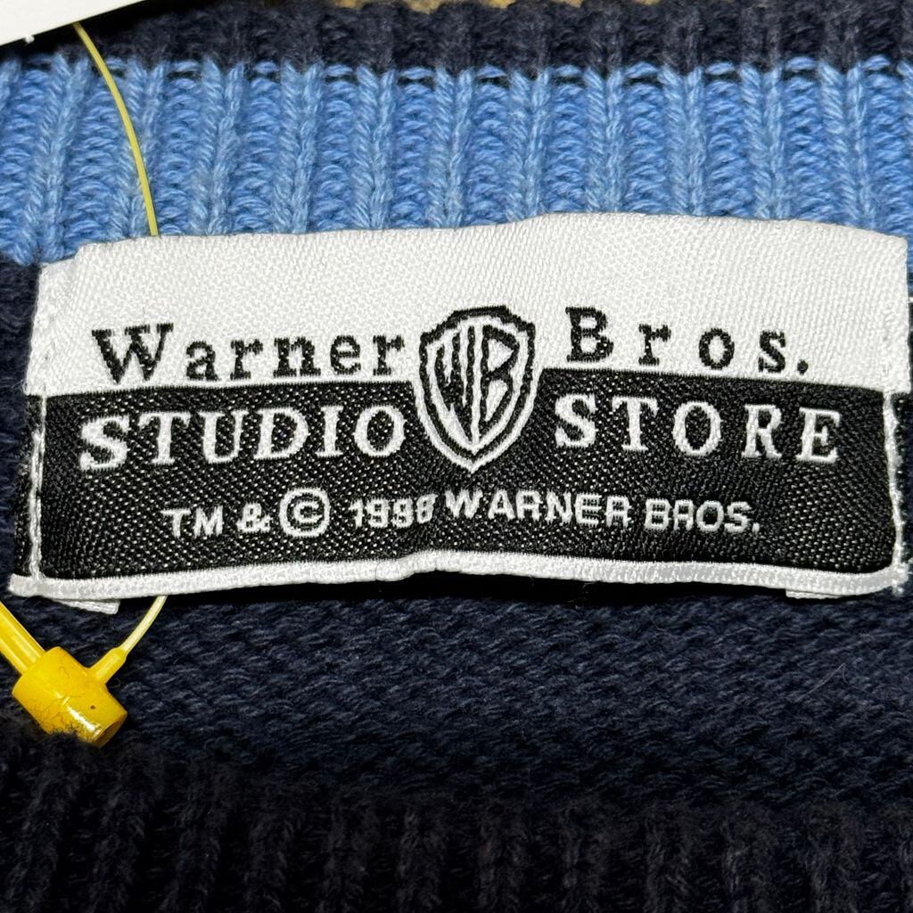 Warner Bros Studio Store ワーナーブラザース タズマニアンデビル コットンニット デザインニット 刺繍ロゴ ネイビー Mサイズ No.EA348