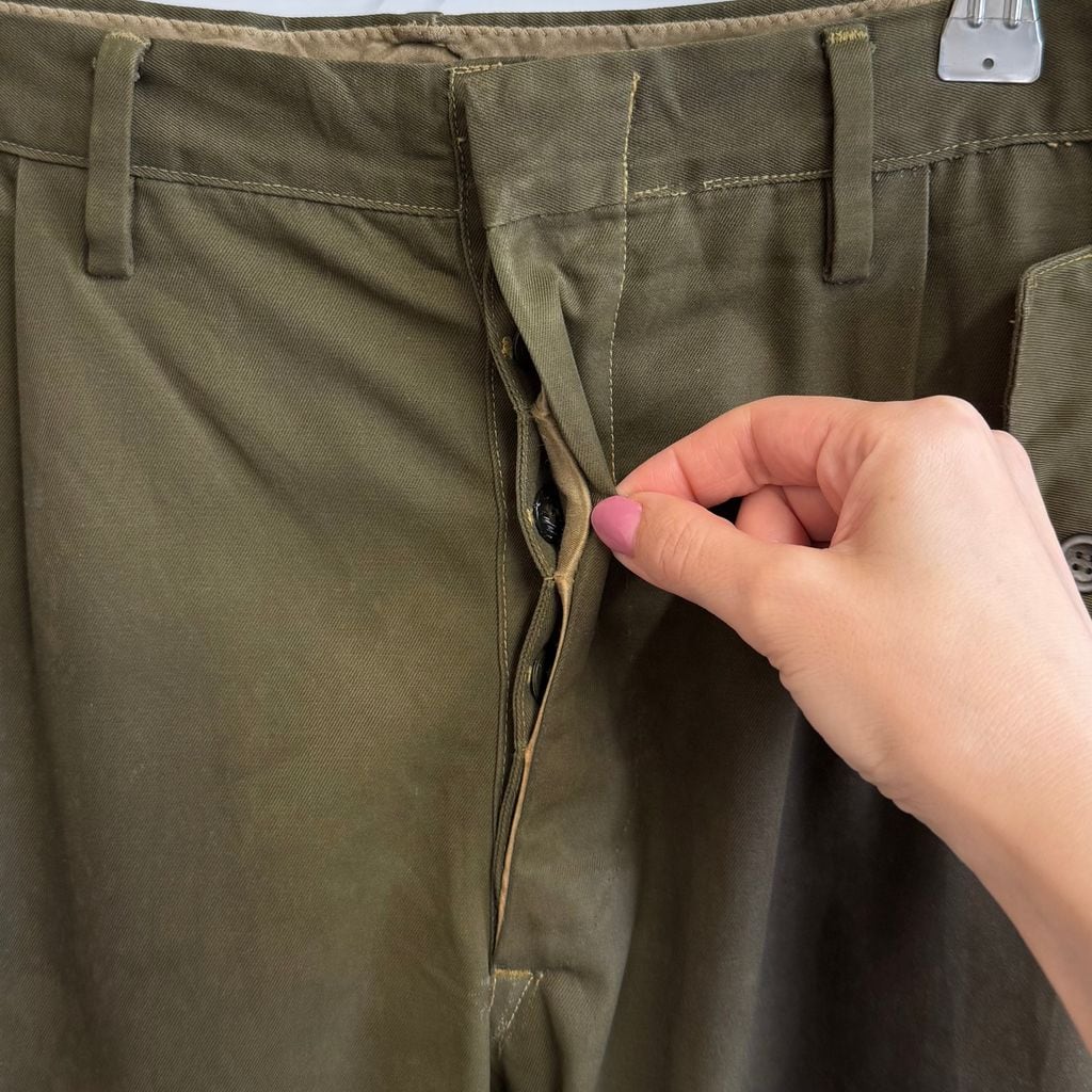 イタリア軍 パラシュートパンツ コンバットパンツ ミリタリーパンツ ボタンフライ カーキ W34程度 No.P345