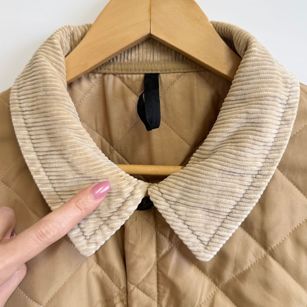Barbour バブアー キルティングジャケット 襟コーデュロイ スナップボタン ベージュ Mサイズ No.P347