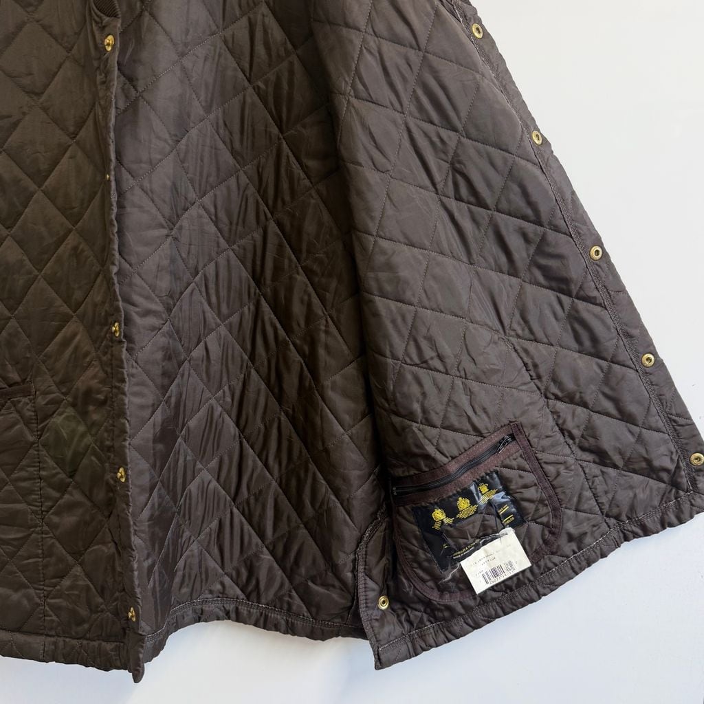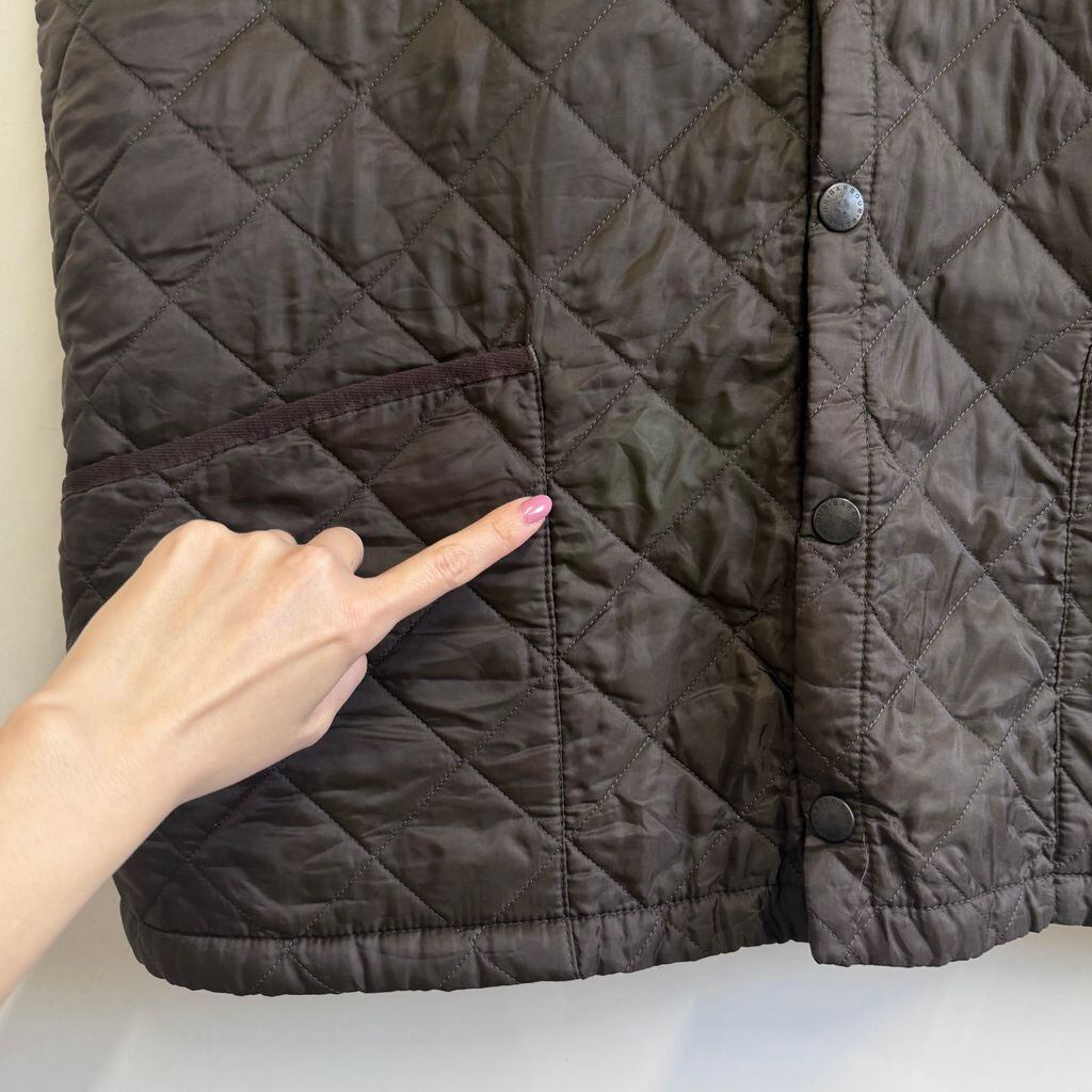〜90's vintage ビンテージ Barbour バブアー キルティングベスト スナップボタン こげ茶 ダークブラウン XLサイズ程度 No.P348