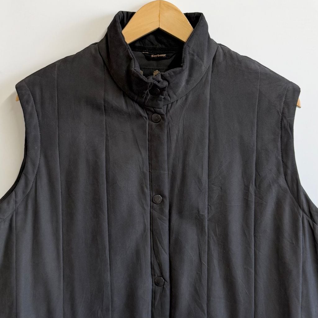 Barbour バブアー キルティングベスト 中綿ベスト 裏地チェック柄 スナップボタン 黒 サイズ16 No.P349