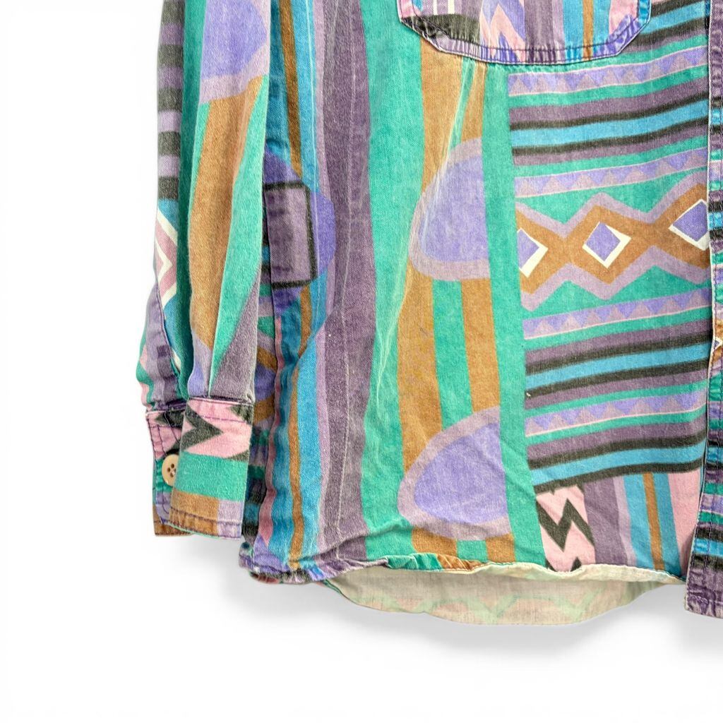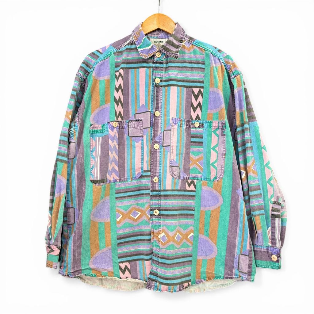 ~90s ASHANTI ネイティヴ柄シャツ コットン 総柄 マルチカラー No.A040