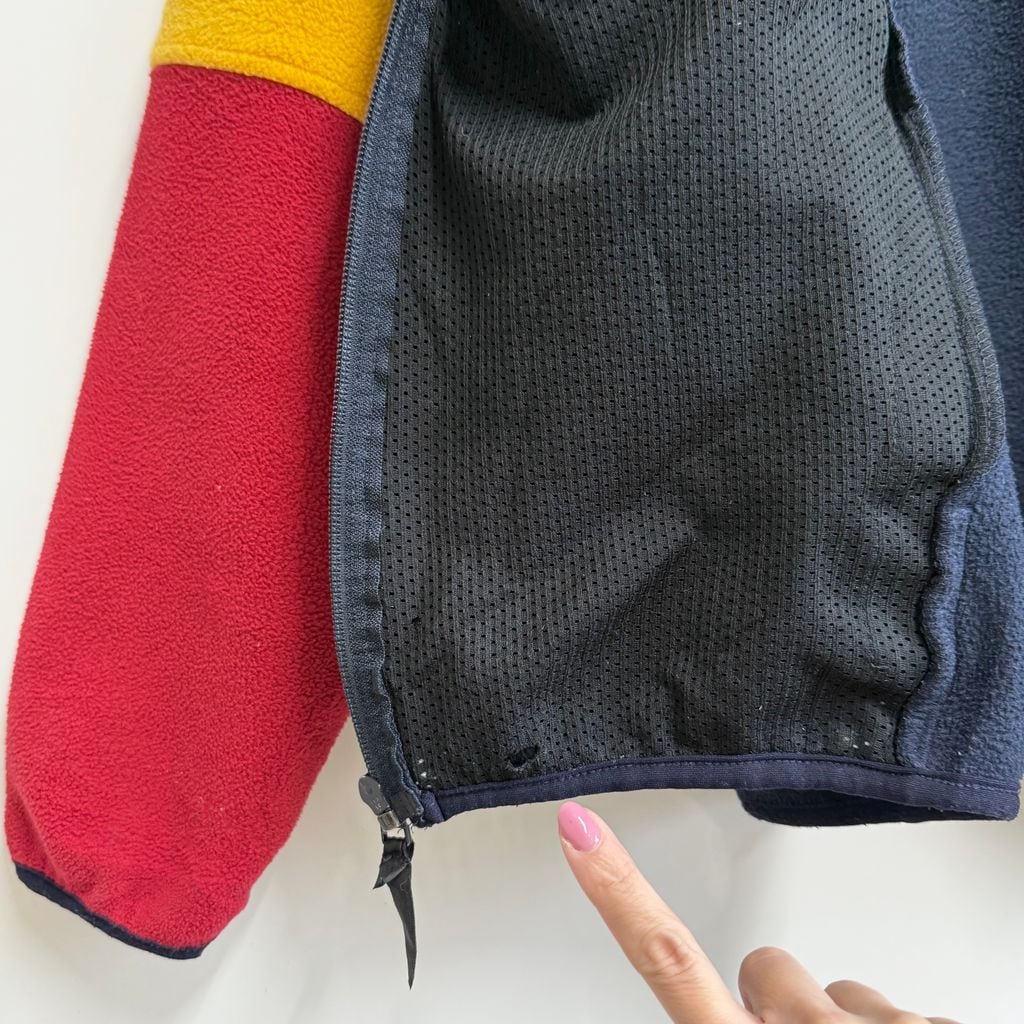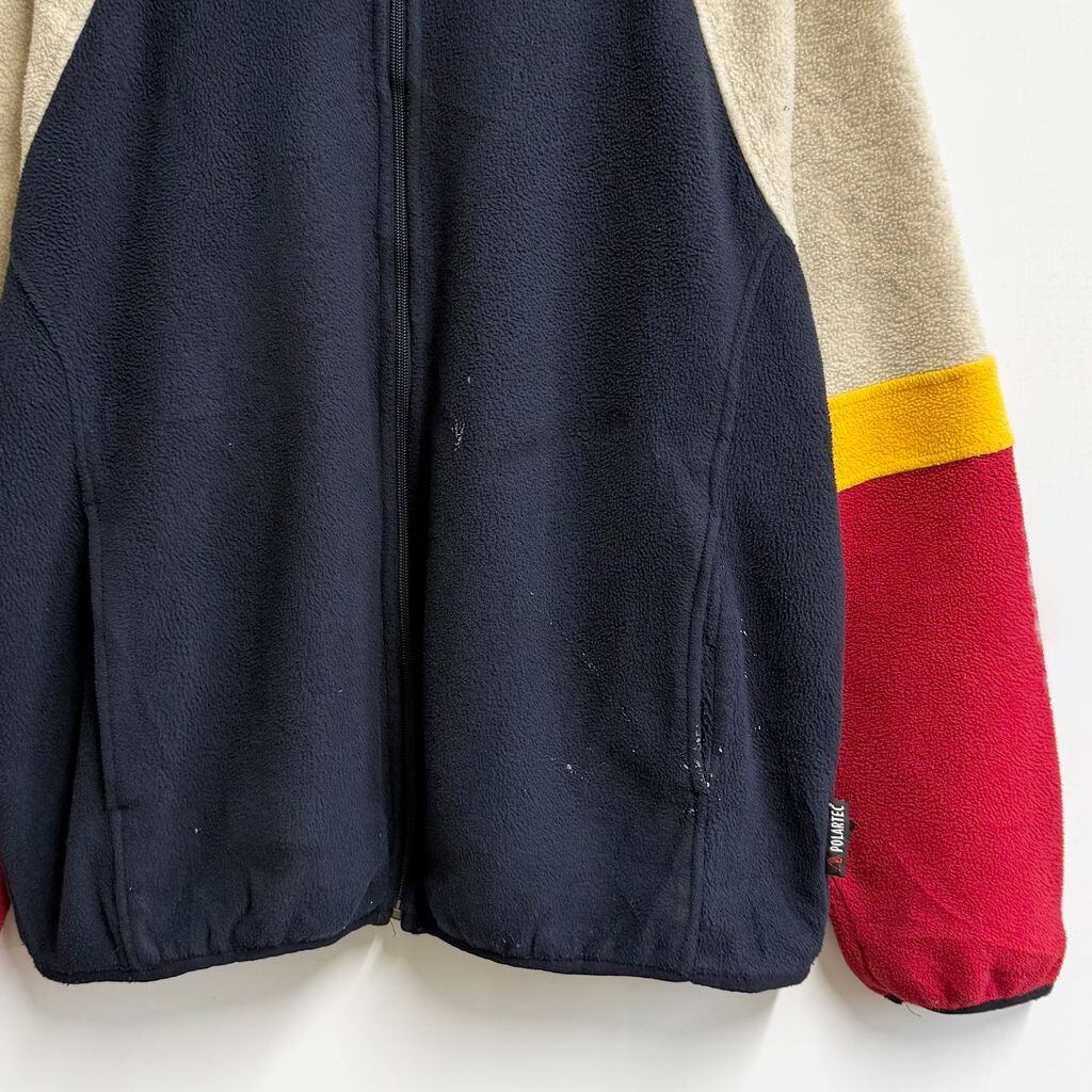 USA製 Woolrich ウールリッチ フリースジャケット 紺×ベージュ×赤×黄色 XLサイズ No.P386