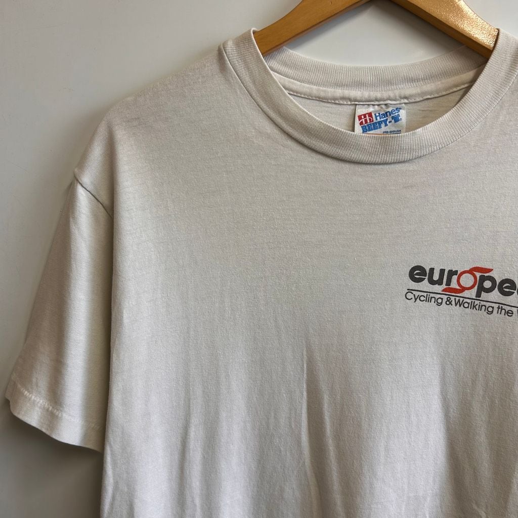 90s Hanes BEEFY-T シングルステッチ "europeds Cycling&walking the world" 白 white SIZE MEDIUM NO.T313