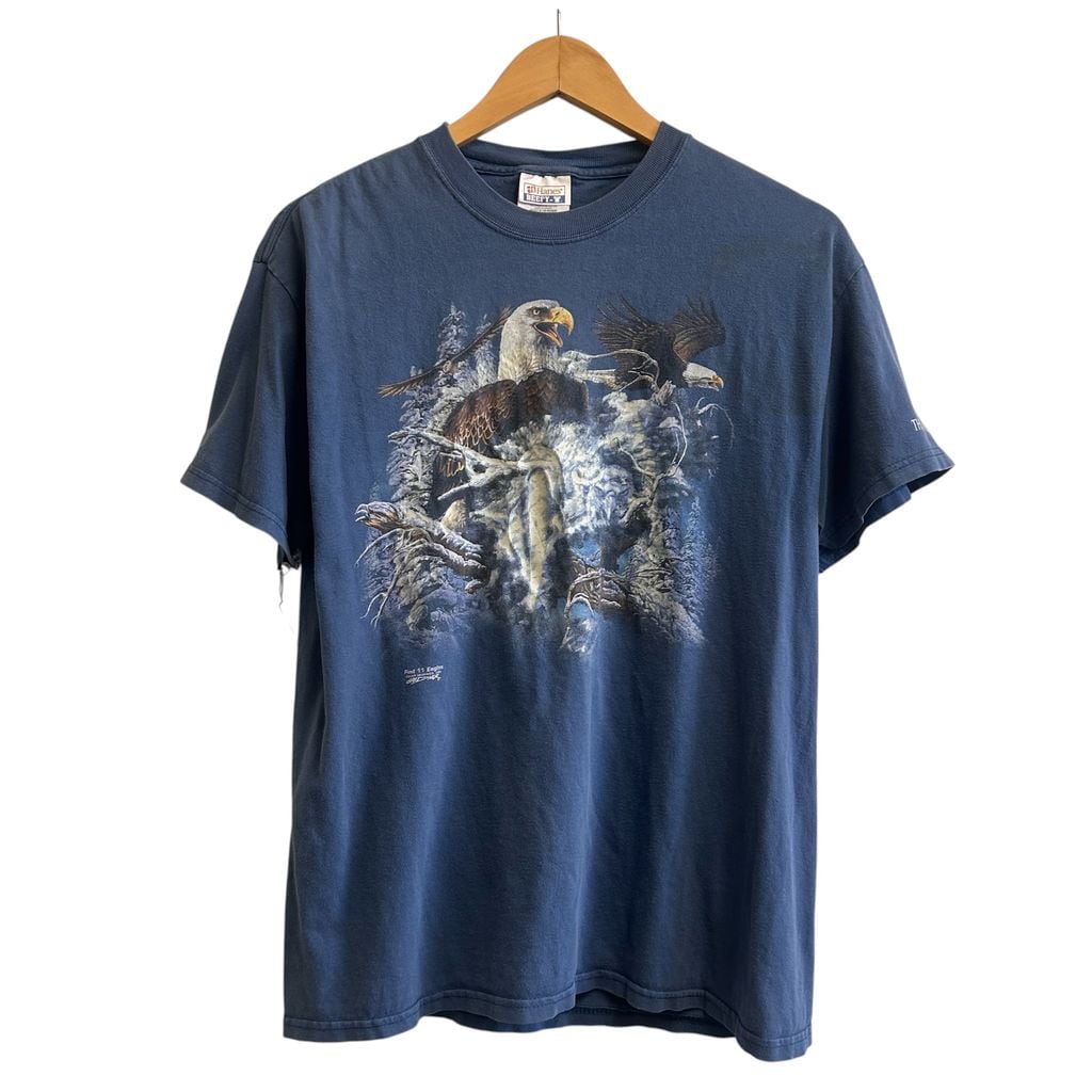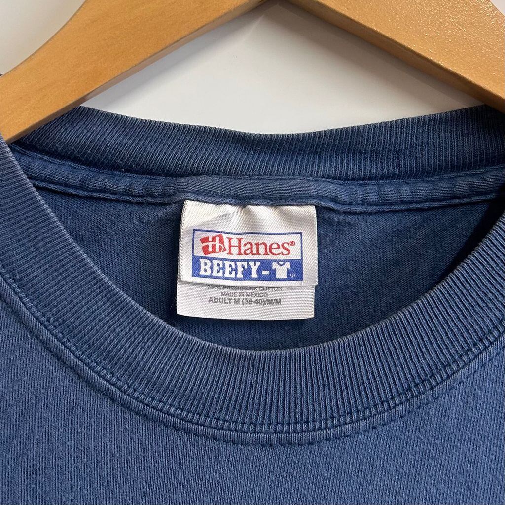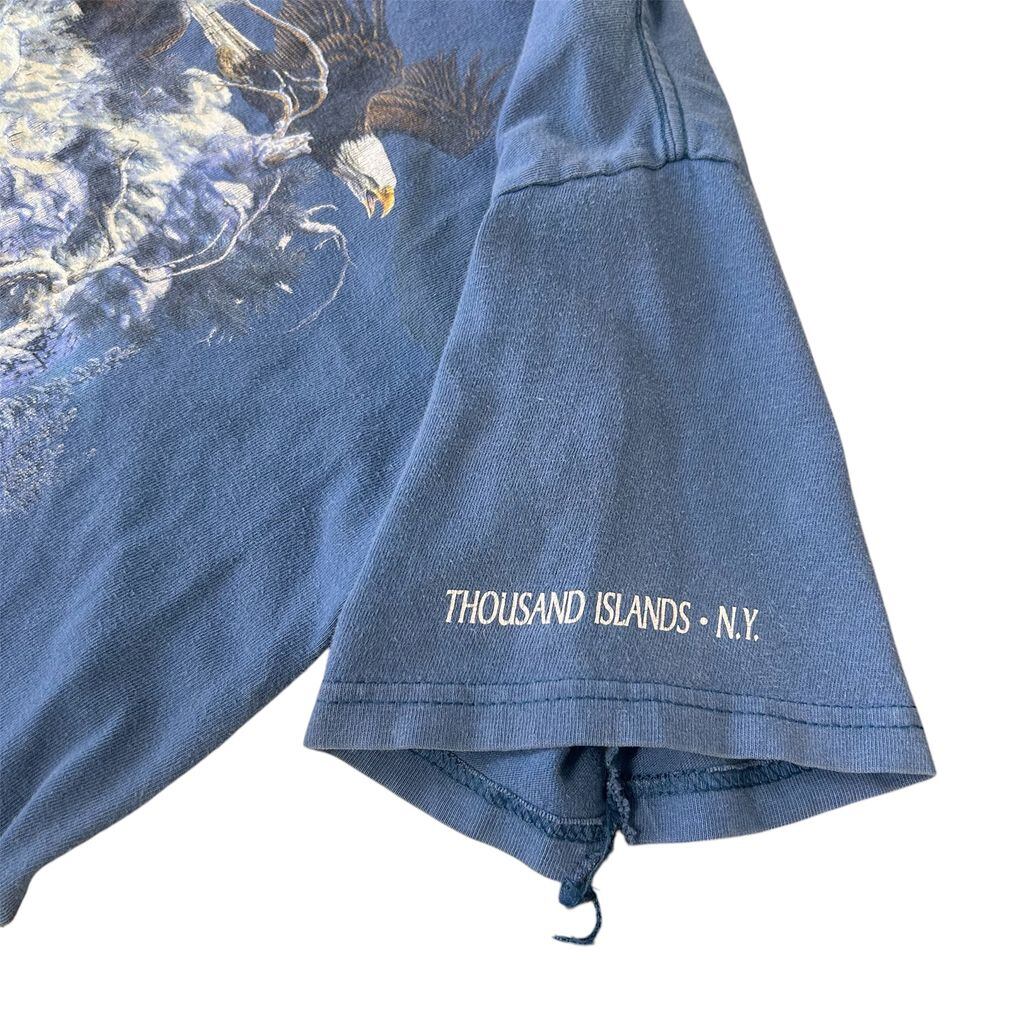 Hanes BEEFY-T ボロ 襤褸 ハーレー風Tシャツ "THOUSAND ISLANDS・NY" 青 blue SIZE ADULT M NO.T316